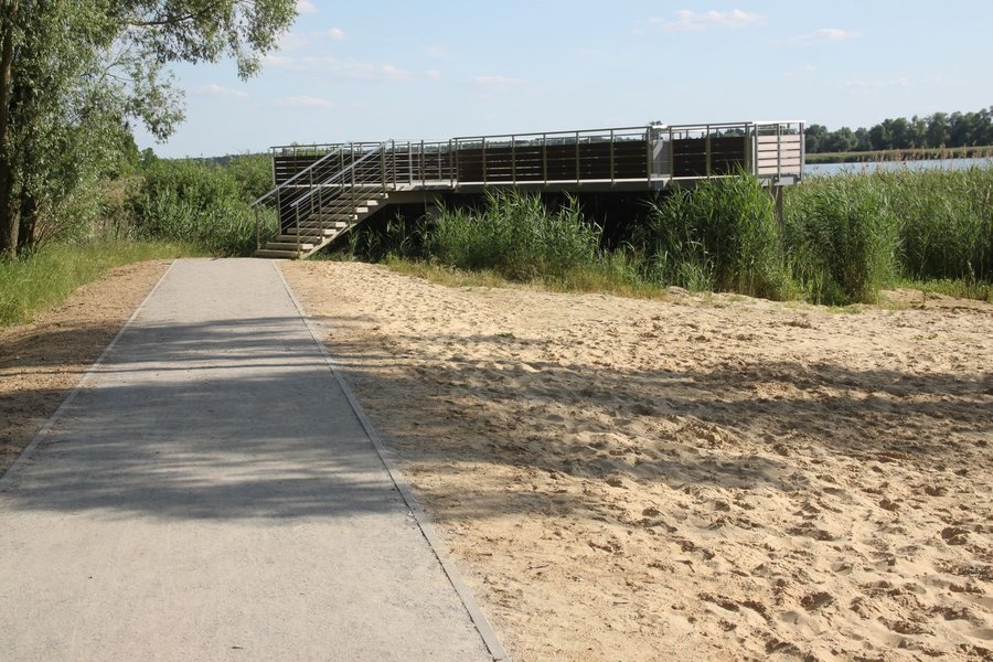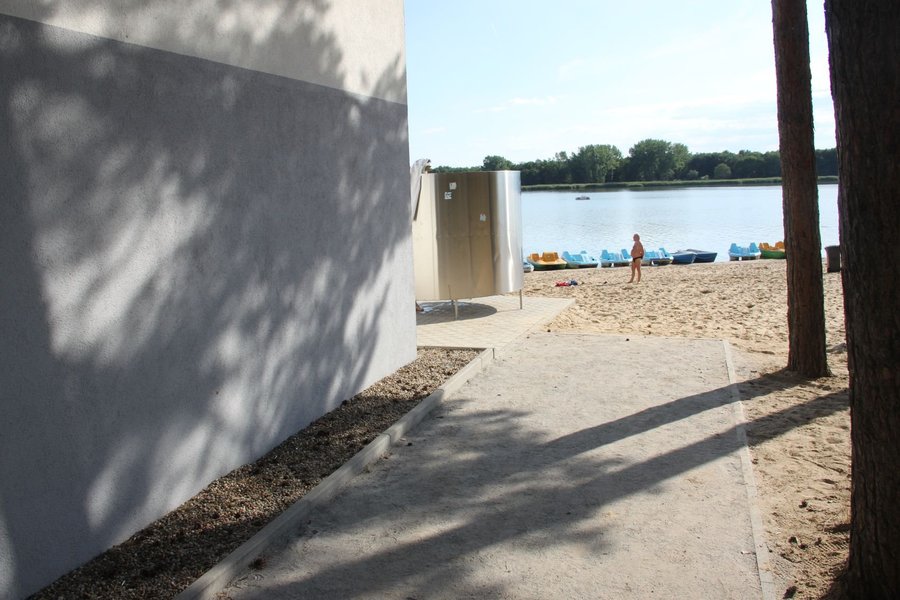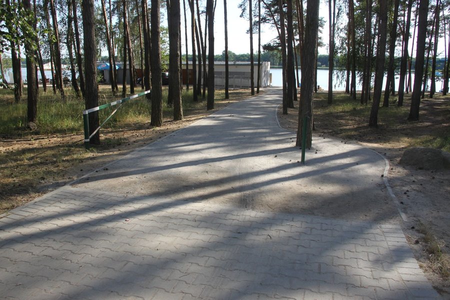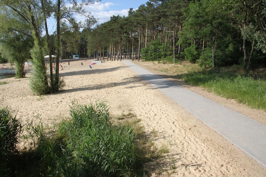 Powstało kilka nowych ścieżek. Jedna z nich prowadzi do punktu widokowego zlokalizowanego tuż nad brzegiem jeziora. Na tarasie widokowym, który powstał na fundamencie dawnego zbiornika retencyjnego, staną jeszcze ławeczki. Nowa ścieżka prowadzi także do budynku ratowników i do pryszniców. Przed sezonem ma powstać dodatkowy fragment ścieżki, która umożliwi niepełnosprawnym, zwłaszcza tym poruszającym się na wózkach, dojazd do linii brzegowej. Przy budynku ratowników pojawiło się poidełko z wodą, z którego można korzystać bez ograniczeń. Znajdzie się tam też miska z wodą dla czworonogów.