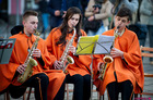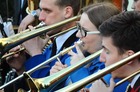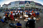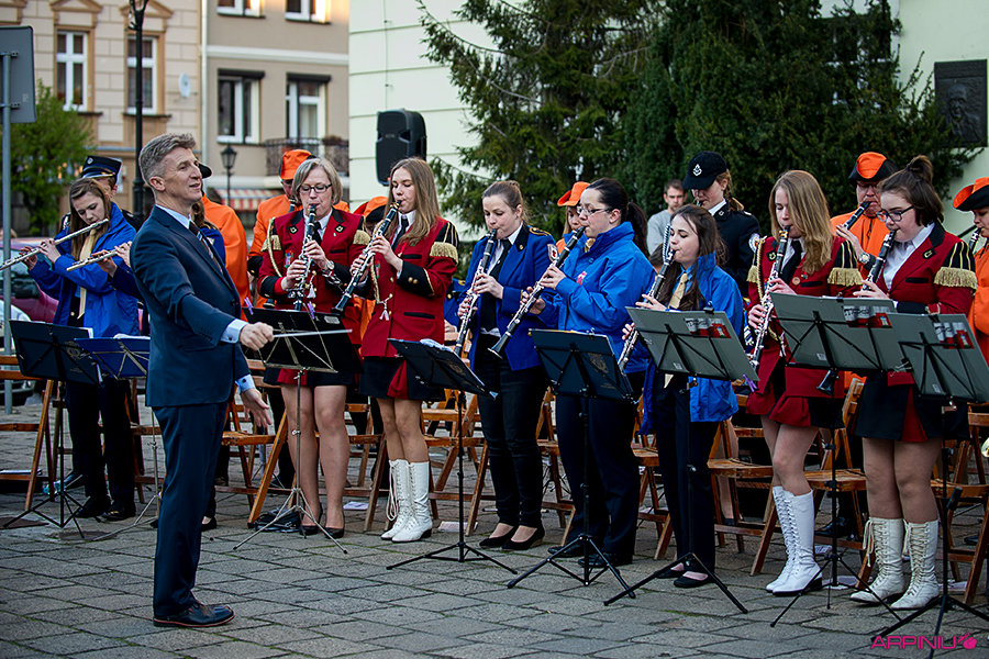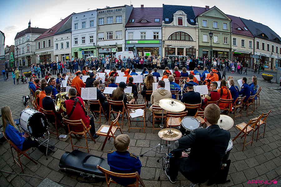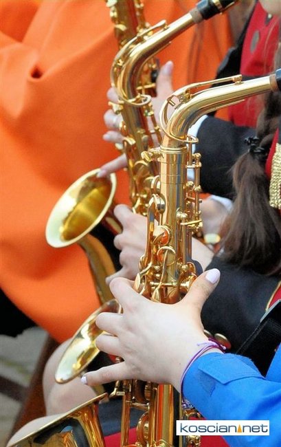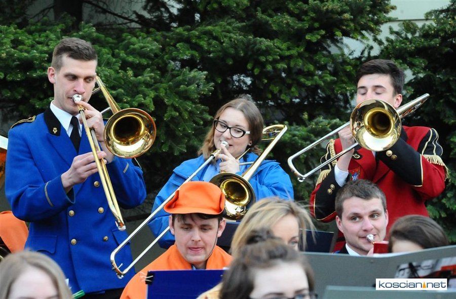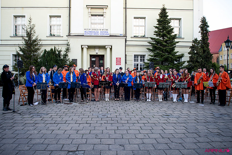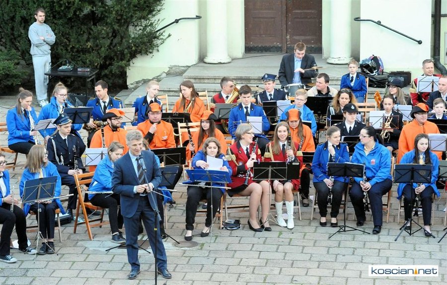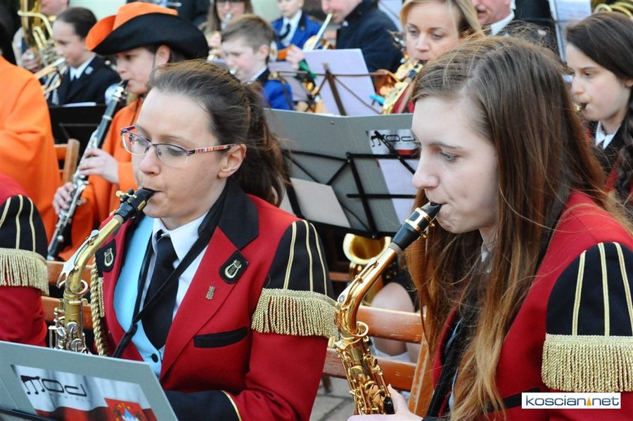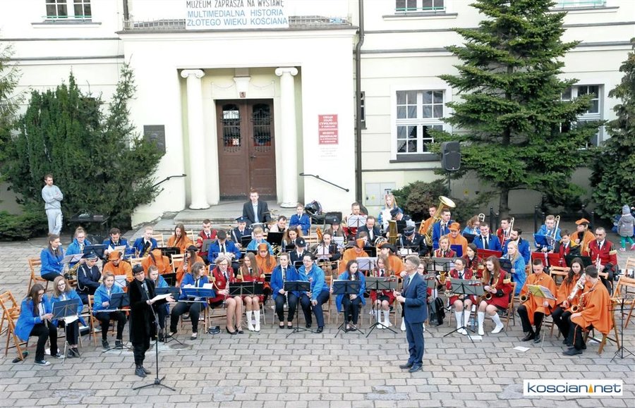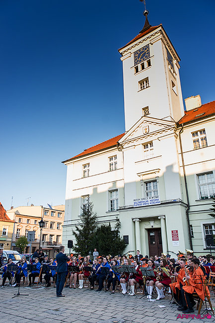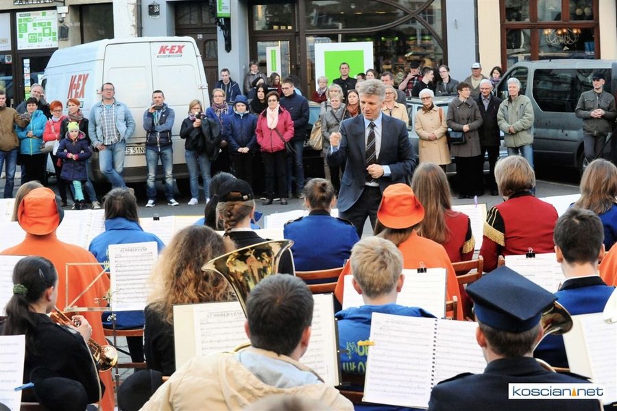 Połączone siły siedmiu orkiestr dętych zaprezentowały swe umiejętności przed kościańskim ratuszem.