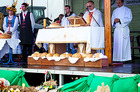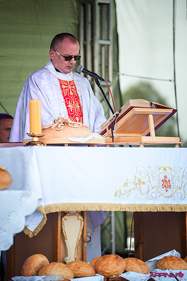 O godz. 13.30 korowód dożynkowy przeszedł w deszczu na plac rekreacyjno-sportowy przy ul. Polnej Kiełczewie, gdzie odprawiono polową mszę. Starostami dożynkowymi byli mieszkańcy Bonikowa: Justyna Jóskowiak i Marek Kaczmarek.
