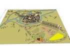 Niezwykle ważną częścią dioramy będzie zamek starościński i próba jego usytuowania, i odtworzenia jego wyglądu na podstawie dostępnych dokumentów, a więc lustracji zamku i starostwa kościańskiego z lat 1565 i 1629. Z uwagi na fakt, że zamek spłonął całkowicie w 1655 r. (spalony doszczętnie przez Szwedów) i brak znanej historykom jakiejkolwiek ikonografii poświęconej tej ważnej w skali miasta królewskiego budowli - w odtworzeniu jego wyglądu korzystano ze szczegółowych i pogłębionych studiów wymienionych lustracji, a posiłkowano się analizą ikonografii ówczesnych zamków, szczególnie z terenu Wielkopolski i Śląska oraz zamków będących własnością rodzin kościańskich starostów z tamtego okresu.