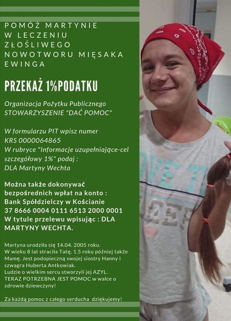 W niedzielę, 23 lutego, w kościele farnym w Kościanie odbył się koncert charytatywny „Ja Jestem” , podczas którego zbierano datki na leczenie i rehabilitację zmagającej się z nowotworem Martyny Wechta. Publiczność zgromadzoną w farze powitała organizatorka koncertu Sylwia Urbańska. W imieniu Martyny przekazała podziękowania wszystkim, którzy wspierają ją w walce z chorobą. Zanim zabrzmiała muzyka wierni odmówili krótką modlitwę. Proboszcz parafii ks. Paweł Skrzypczak udzielił im błogosławieństwa. Dla czternastoletniej Martyny zagrał zespół Misericordia w Buku.