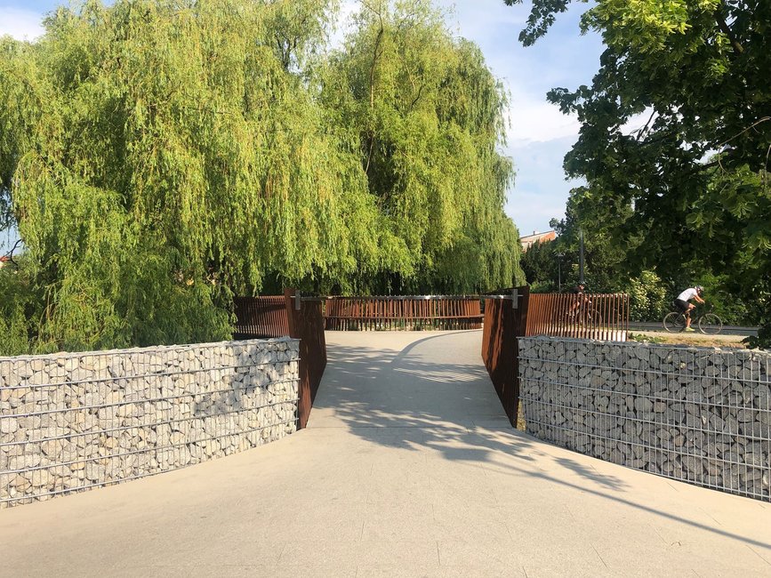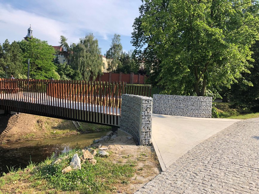 Dwa gabiony, czyli kosze z metalowej siatki wypełnione kamieniami, to reakcja na uwagi mieszkańców, którzy wskazywali, że stroma skarpa przy wejściu na most od strony byłej gazowni nie jest należycie zabezpieczona. Wnioskowano o ustawienie w tym miejscu barierek. Miasto zdecydowało się na ustawienie koszy gabionowych. Prace przy ich montażu zakończą się w przyszłym tygodniu.