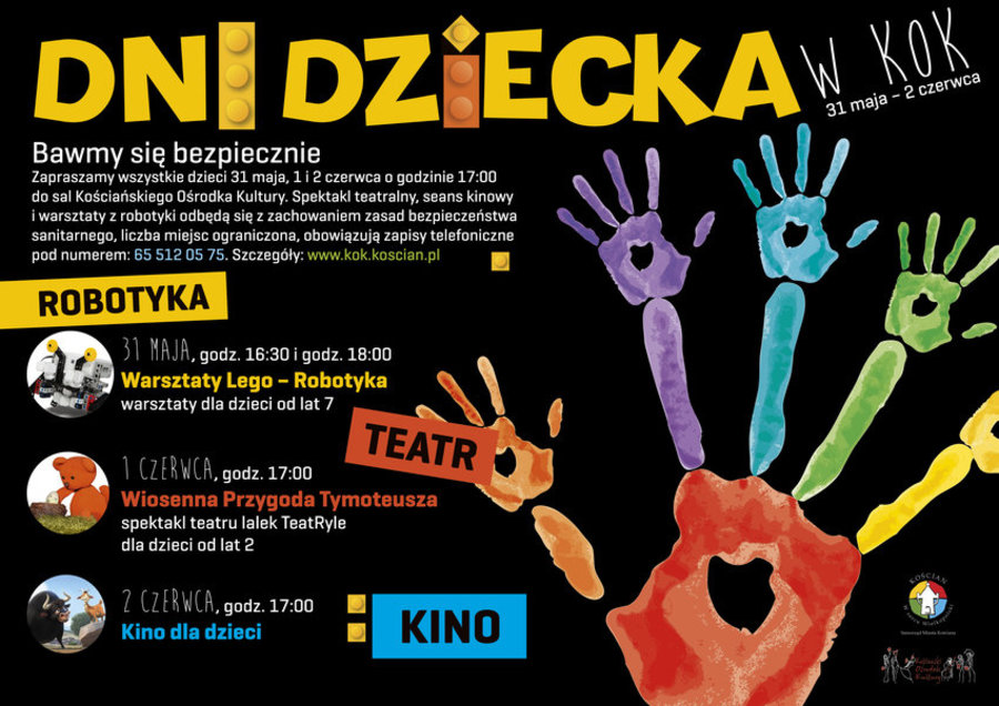 Kościański Ośrodek Kultury zaprasza dzieci na wydarzenia, które odbędą się z zachowaniem zasad bezpieczeństwa sanitarnego, co oznacza, że liczba miejsc będzie ograniczona. Obowiązują zapisy telefoniczne pod numerem: 65-512-05-75. Wstęp na imprezy jest bezpłatny.