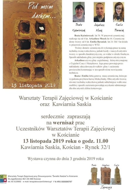 W kościańskiej kawiarni Saskia otwarto wystawę uczestników Warsztatów Terapii Zajęciowej zatytułowaną „Pod moim dachem”.