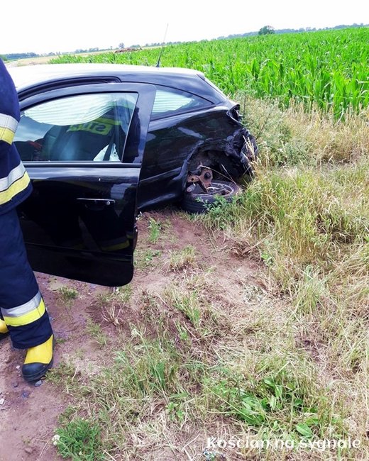 W sobotę, 23 czerwca, około godziny 15., na drodze pomiędzy Karminem i Wonieściem kierująca autem dostawczym 46-letnia kobieta straciła panowanie nad samochodem, zjechała na przeciwny pas ruchu i uderzyła w osobowego opla. Skarżącą się na ból głowy i kręgosłupa kobietę przewieziono na badanie do szpitala.