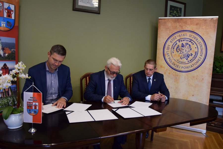 W poniedziałek w imieniu Zarządu starostowie Henryk Bartoszewski i Zbigniew Franek podpisali z Jackiem Nowakiem, Burmistrzem Miasta i Gminy Krzywiń umowę, w wyniku której Środowiskowy Dom Samopomocy w Krzywiniu otrzyma dotację na zakup 9-osobowego samochodu do przewozu swoich podopiecznych.