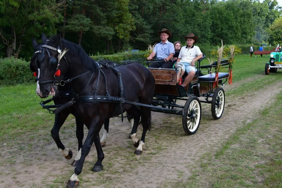 Podobnie jak w ubiegłym roku, dożynki zorganizowano na hipodromie. Rozpoczął je barwny korowód wieńców dożynkowych, któremu towarzyszyły zabytkowe traktory, klasyczne samochody i motocykle.