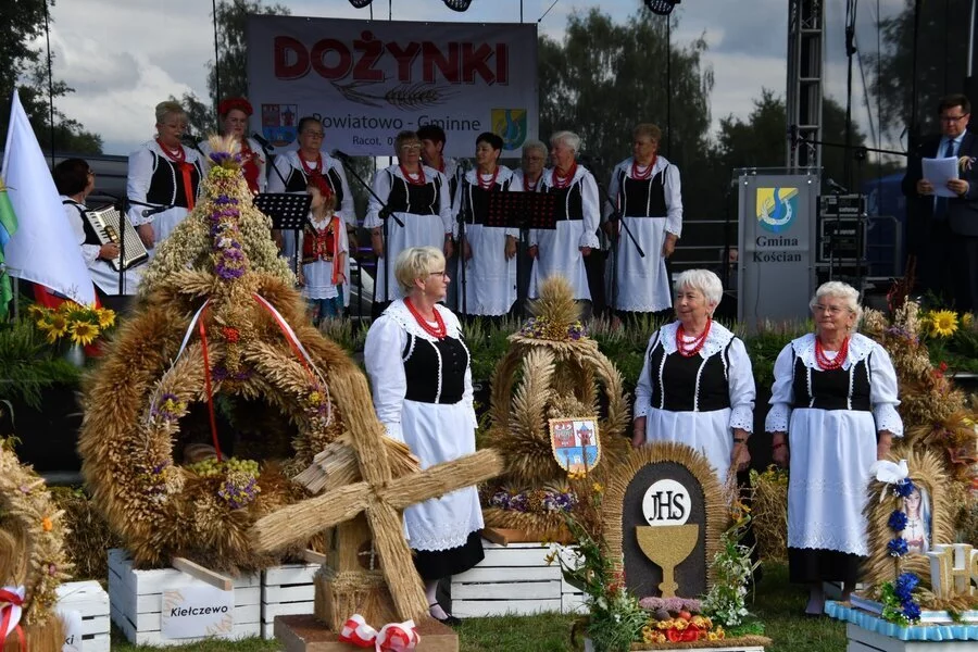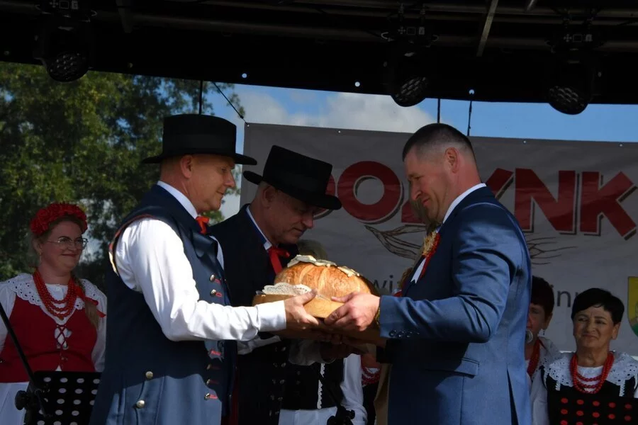 Po nabożeństwie odbyła się część obrzędowa – starostowie dożynkowi przekazali bochny chleba gospodarzom wydarzenia: wójtowi Andrzejowi Przybyle i staroście Arturowi Opasowi. Tradycyjny chleb został następnie podzielony wśród uczestników. W atmosferę święta wprowadzał występ zespołu „Kokorzynianki”, a nie mogło zabraknąć również symbolicznego obtańczenia wieńca.