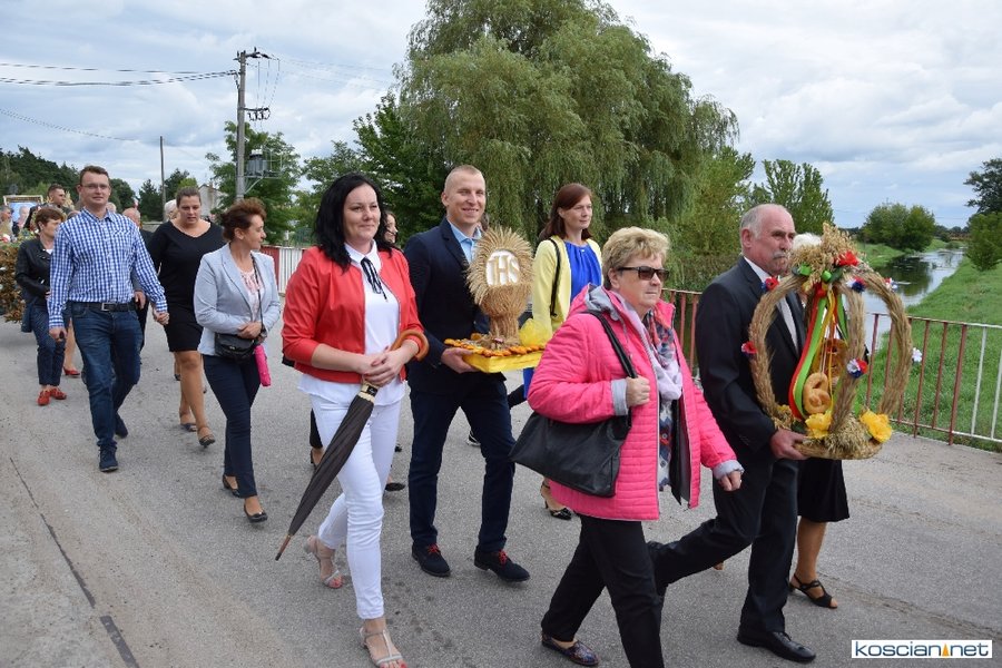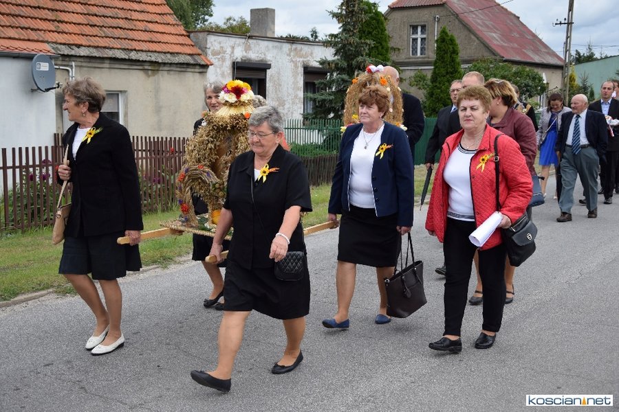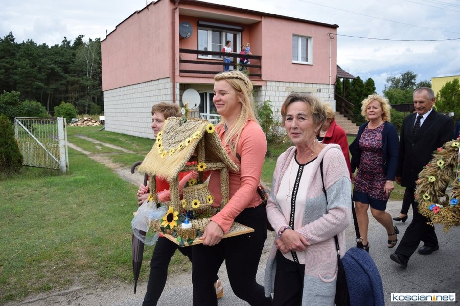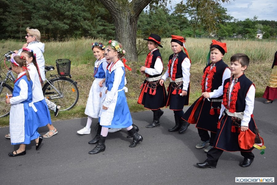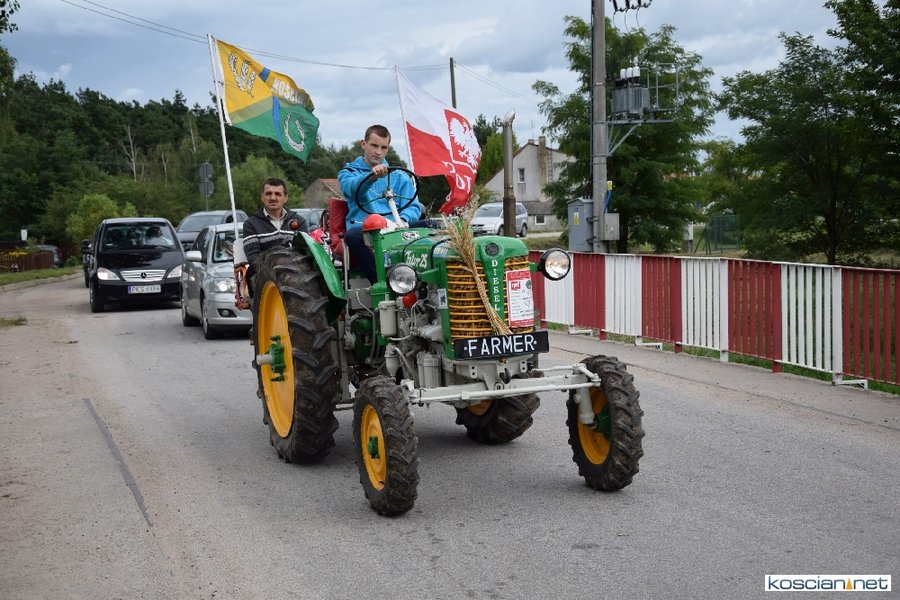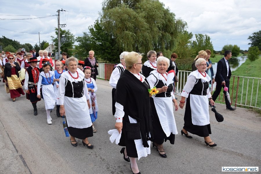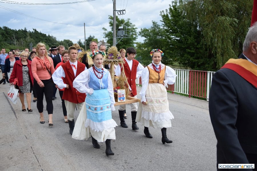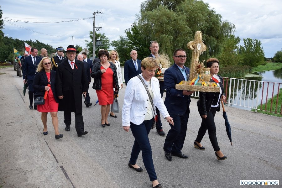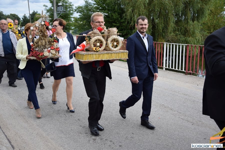 Pogoda w niedzielę była łaskawa. Po raz pierwszy od lat podczas dożynek gminy Kościan nie padał deszcz. Uroczystość rozpoczął przemarsz korowodu z ul. Polnej w Kiełczewie na plac rekreacyjno-sportowy, gdzie księża Czesław Małycha i Paweł Skrzypczak odprawili polową mszę dziękczynną za plony. Powiatowy wieniec dożynkowy w korowodzie nieśli Żeńcy Wielkopolscy: Joanna Tyrpin, Weronika Buśko, Jakub Paul i Marcin Kaczmarzyk.