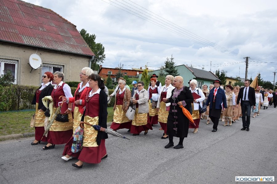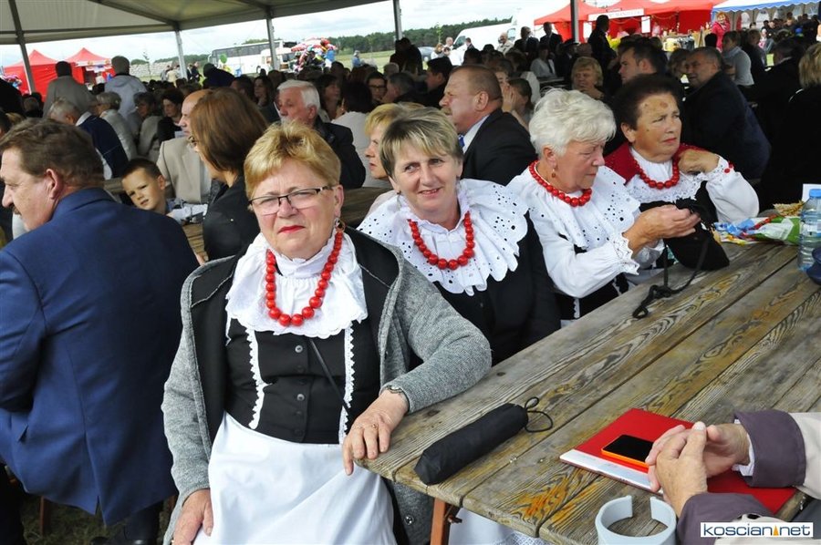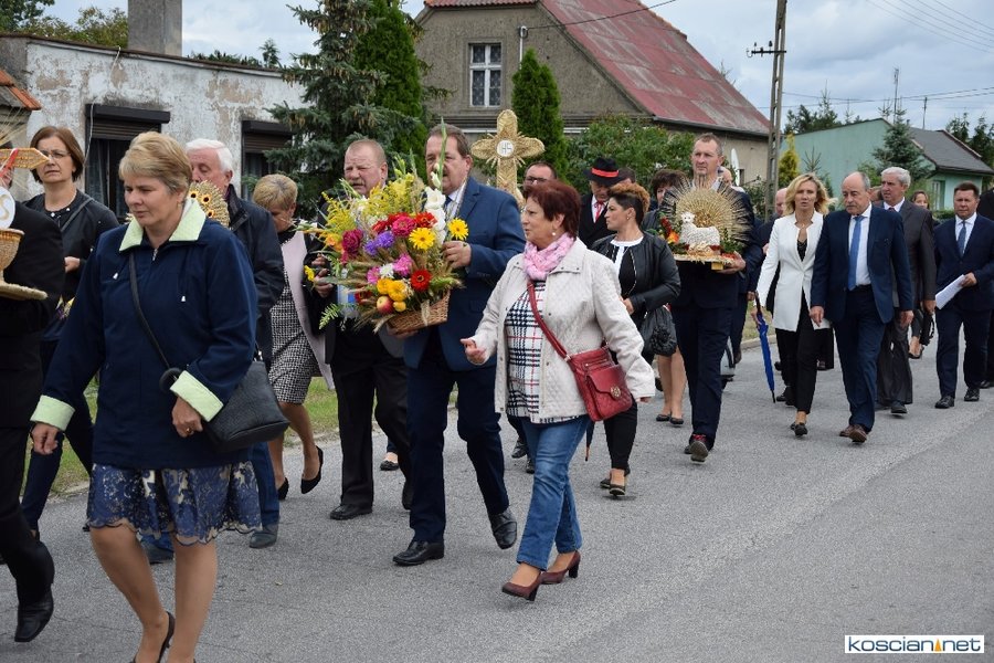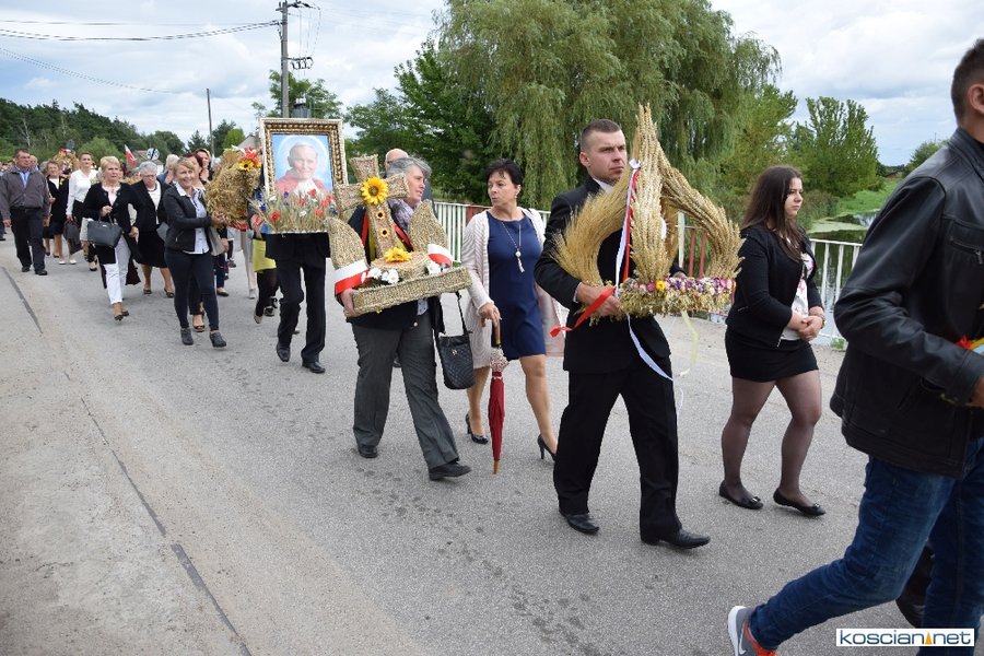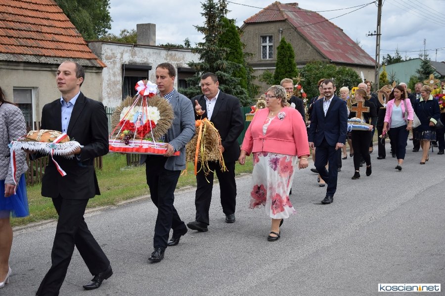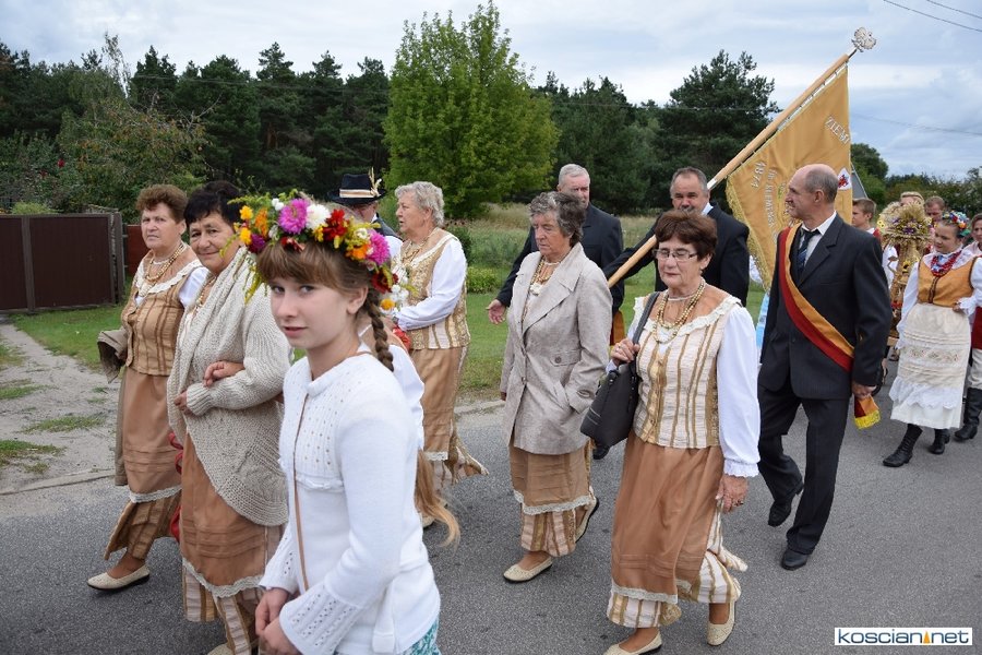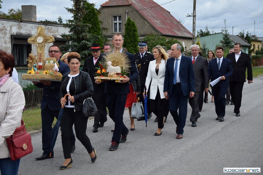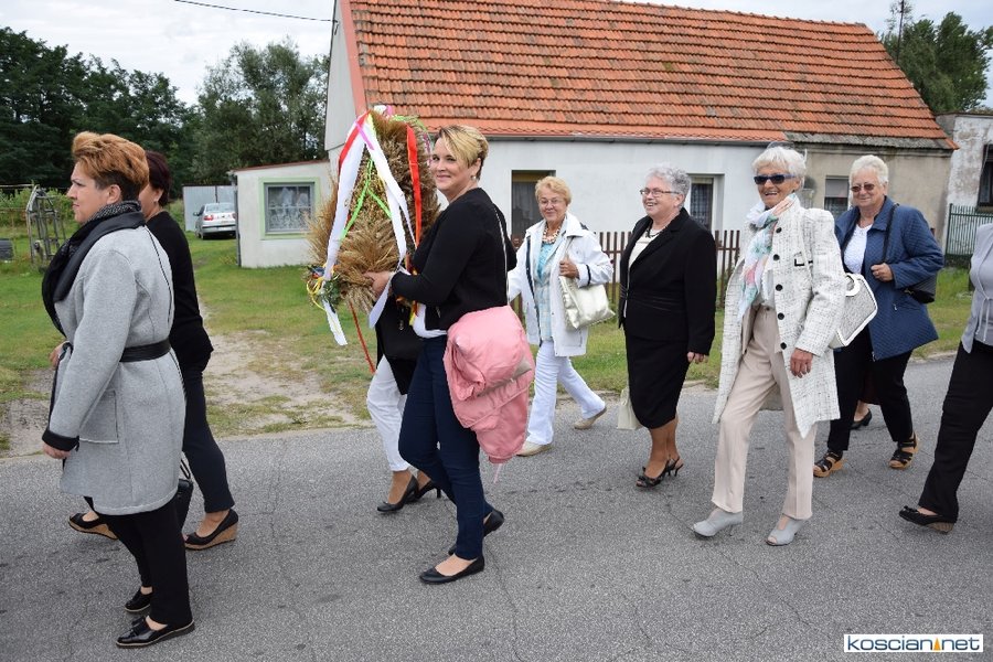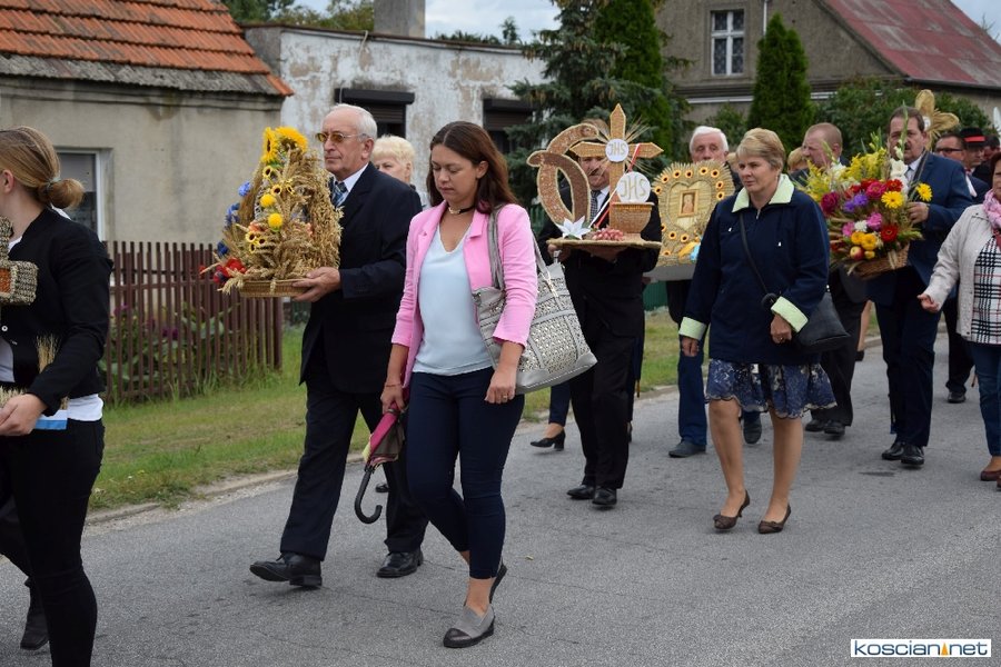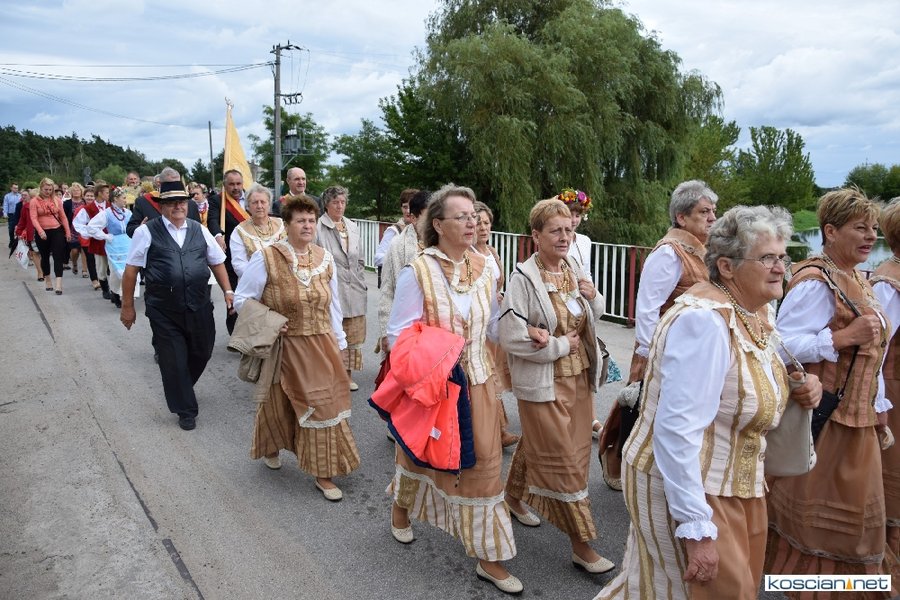 Pogoda w niedzielę była łaskawa. Po raz pierwszy od lat podczas dożynek gminy Kościan nie padał deszcz. Uroczystość rozpoczął przemarsz korowodu z ul. Polnej w Kiełczewie na plac rekreacyjno-sportowy, gdzie księża Czesław Małycha i Paweł Skrzypczak odprawili polową mszę dziękczynną za plony. Powiatowy wieniec dożynkowy w korowodzie nieśli Żeńcy Wielkopolscy: Joanna Tyrpin, Weronika Buśko, Jakub Paul i Marcin Kaczmarzyk.