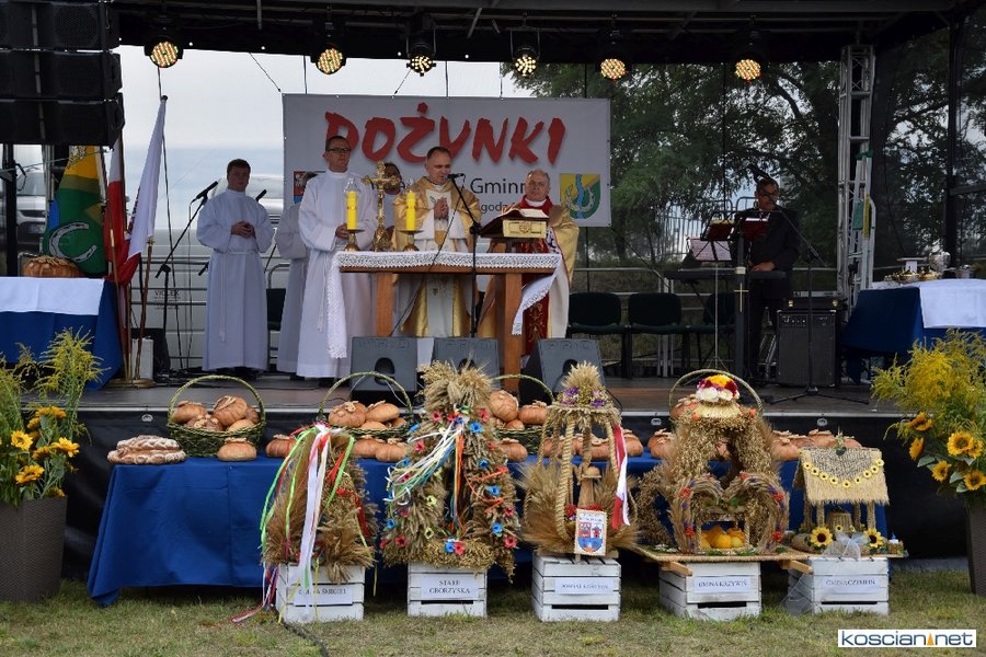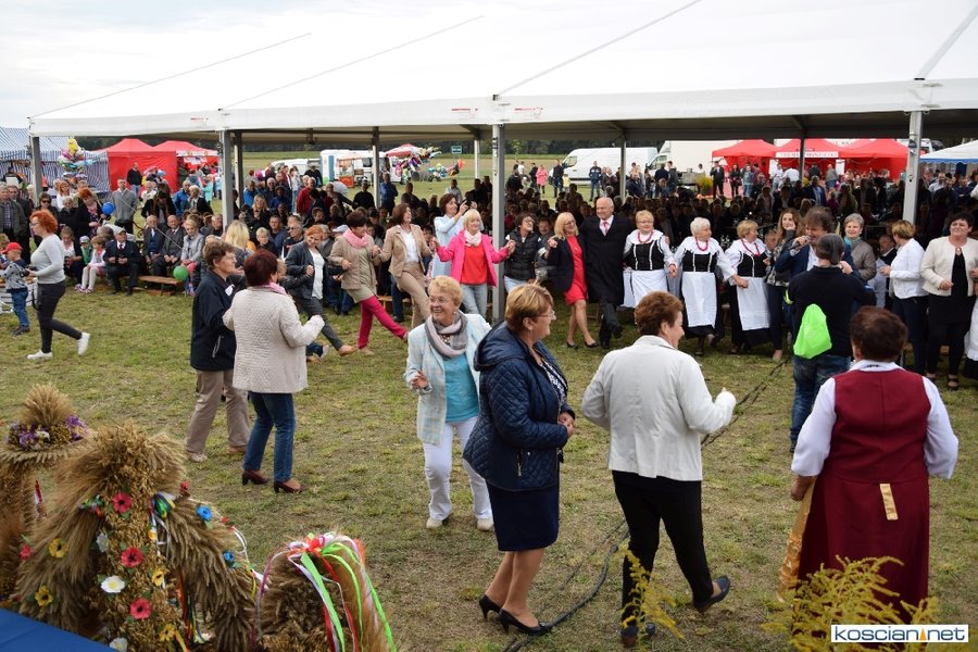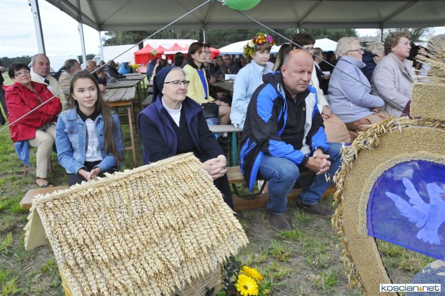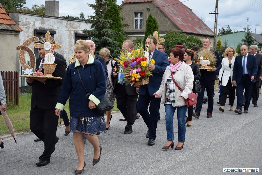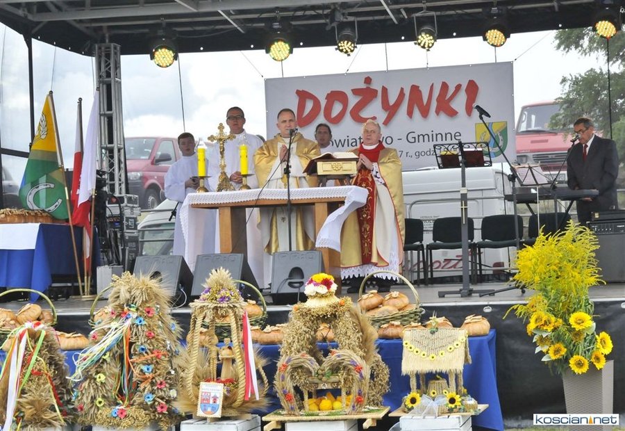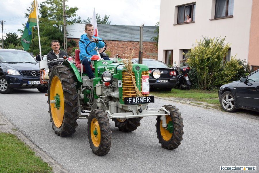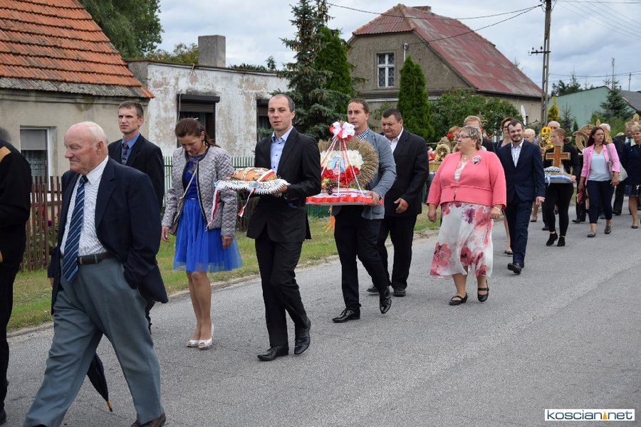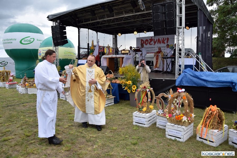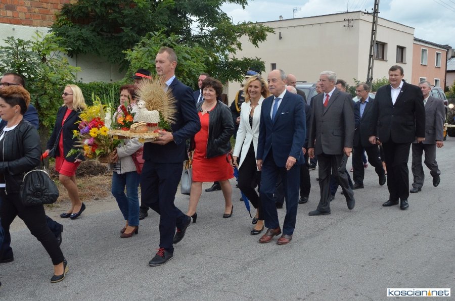 Pogoda w niedzielę była łaskawa. Po raz pierwszy od lat podczas dożynek gminy Kościan nie padał deszcz. Uroczystość rozpoczął przemarsz korowodu z ul. Polnej w Kiełczewie na plac rekreacyjno-sportowy, gdzie księża Czesław Małycha i Paweł Skrzypczak odprawili polową mszę dziękczynną za plony. Powiatowy wieniec dożynkowy w korowodzie nieśli Żeńcy Wielkopolscy: Joanna Tyrpin, Weronika Buśko, Jakub Paul i Marcin Kaczmarzyk.
