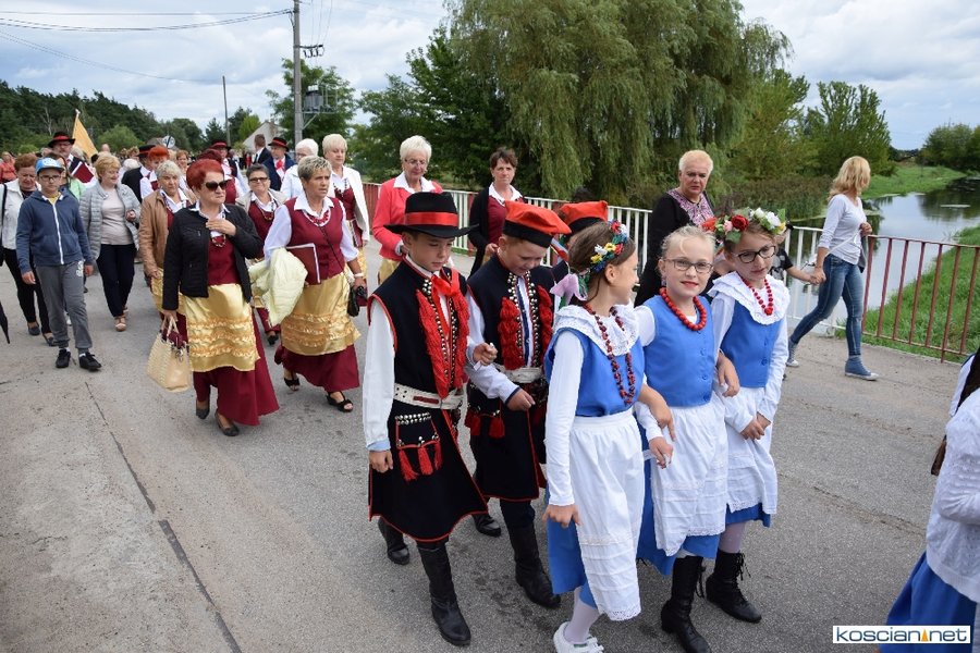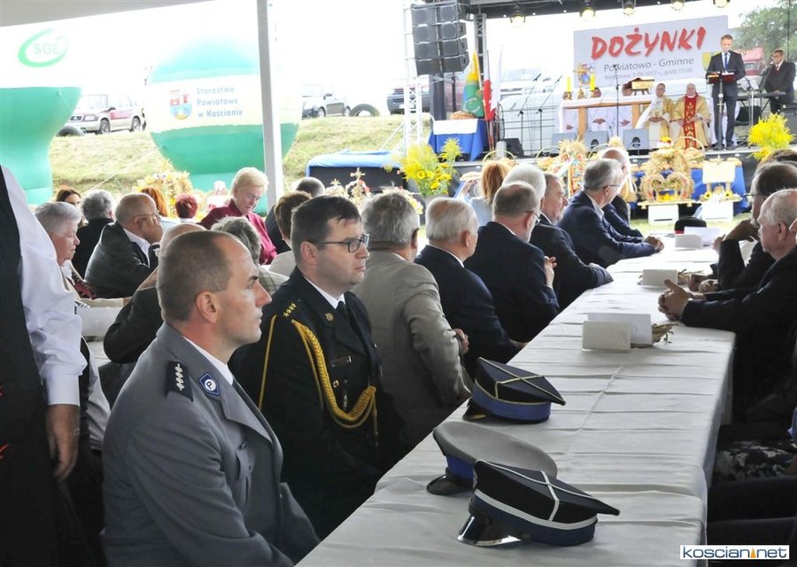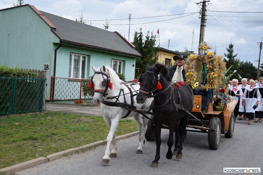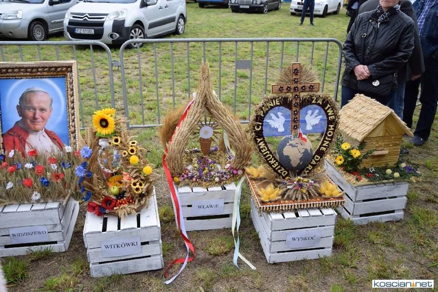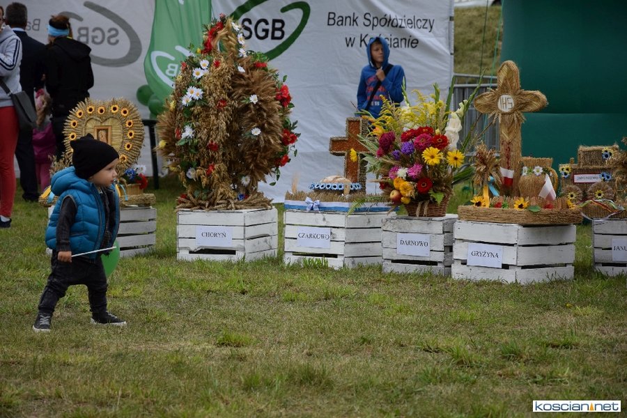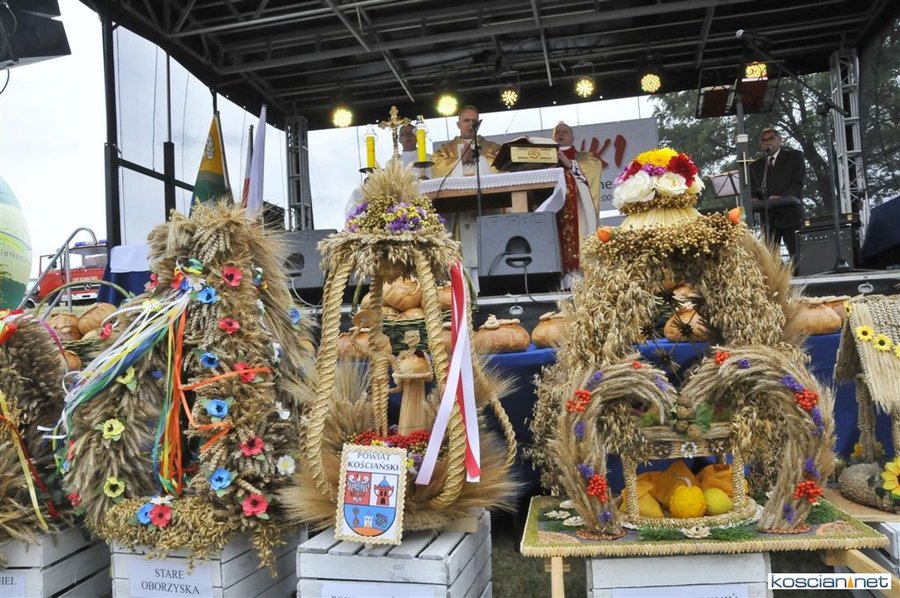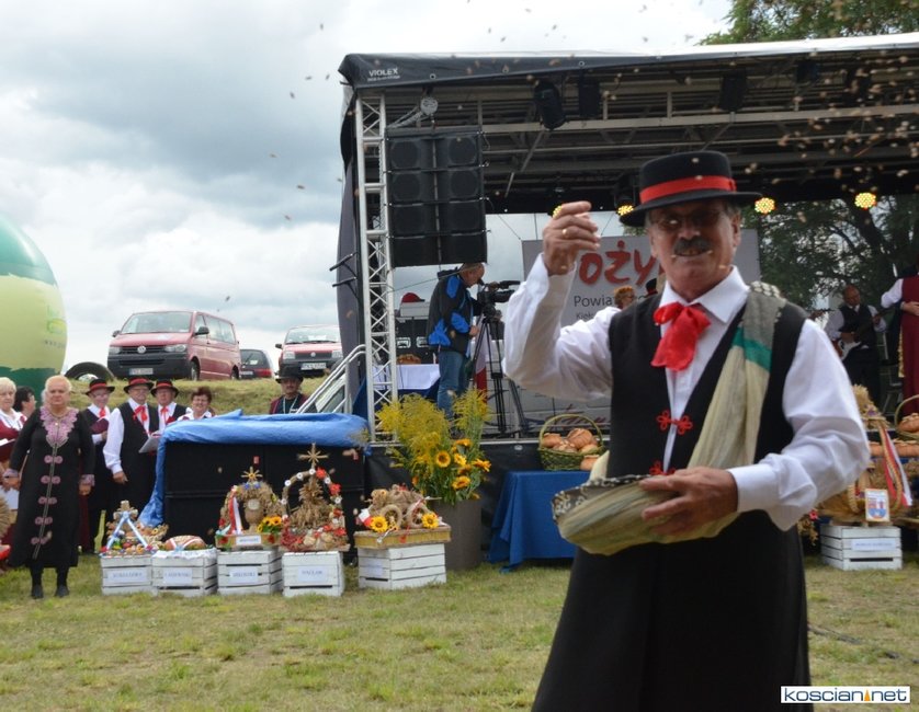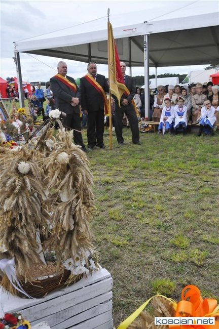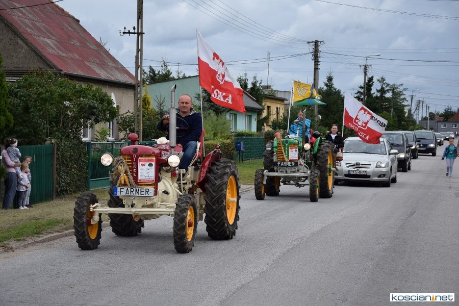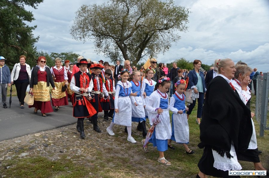 Pogoda w niedzielę była łaskawa. Po raz pierwszy od lat podczas dożynek gminy Kościan nie padał deszcz. Uroczystość rozpoczął przemarsz korowodu z ul. Polnej w Kiełczewie na plac rekreacyjno-sportowy, gdzie księża Czesław Małycha i Paweł Skrzypczak odprawili polową mszę dziękczynną za plony. Powiatowy wieniec dożynkowy w korowodzie nieśli Żeńcy Wielkopolscy: Joanna Tyrpin, Weronika Buśko, Jakub Paul i Marcin Kaczmarzyk.