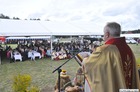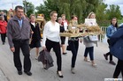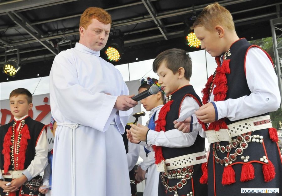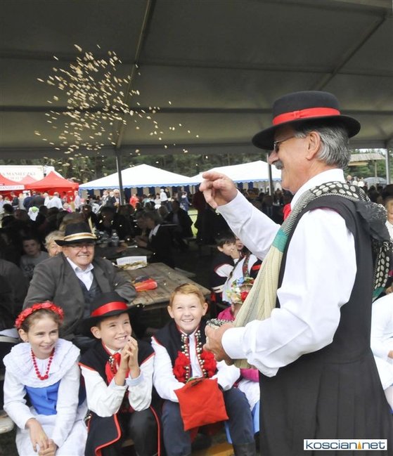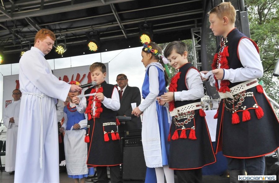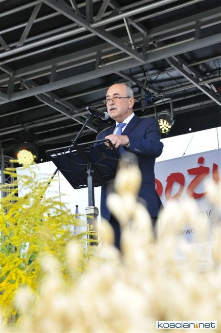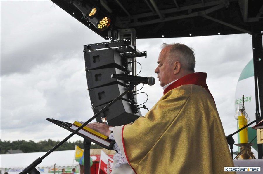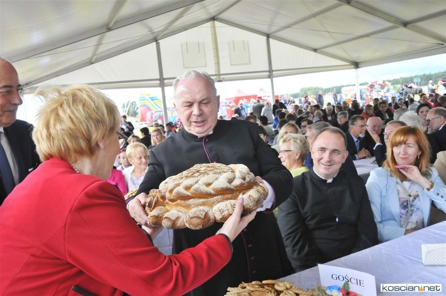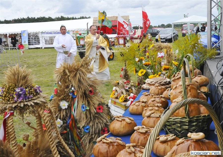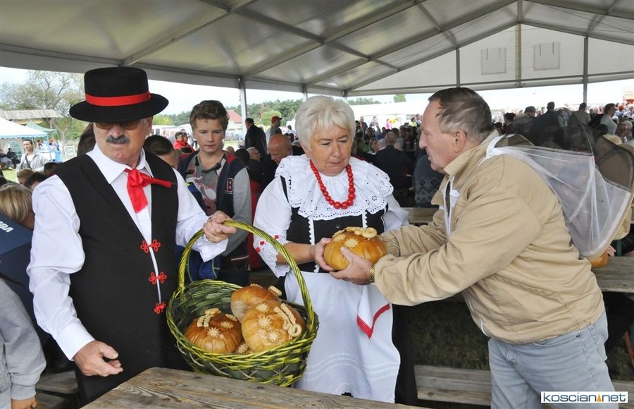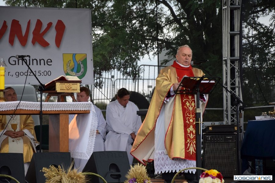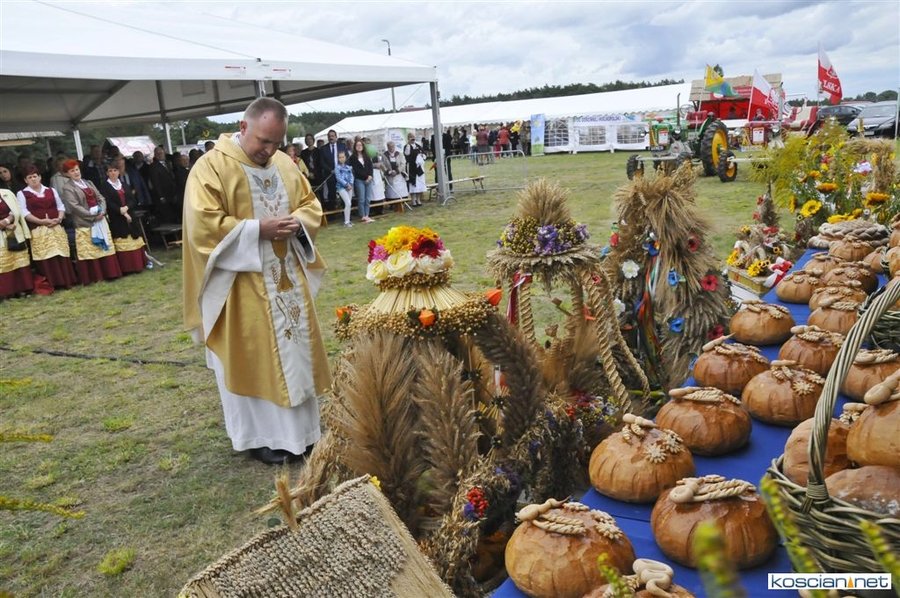 Pogoda w niedzielę była łaskawa. Po raz pierwszy od lat podczas dożynek gminy Kościan nie padał deszcz. Uroczystość rozpoczął przemarsz korowodu z ul. Polnej w Kiełczewie na plac rekreacyjno-sportowy, gdzie księża Czesław Małycha i Paweł Skrzypczak odprawili polową mszę dziękczynną za plony. Powiatowy wieniec dożynkowy w korowodzie nieśli Żeńcy Wielkopolscy: Joanna Tyrpin, Weronika Buśko, Jakub Paul i Marcin Kaczmarzyk.