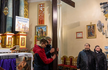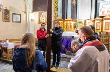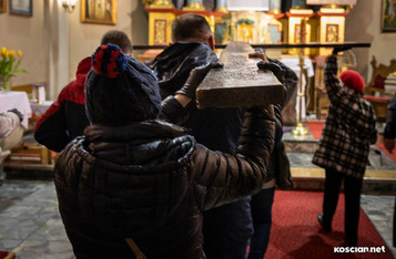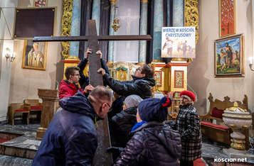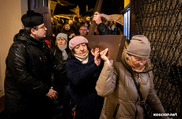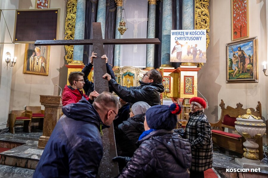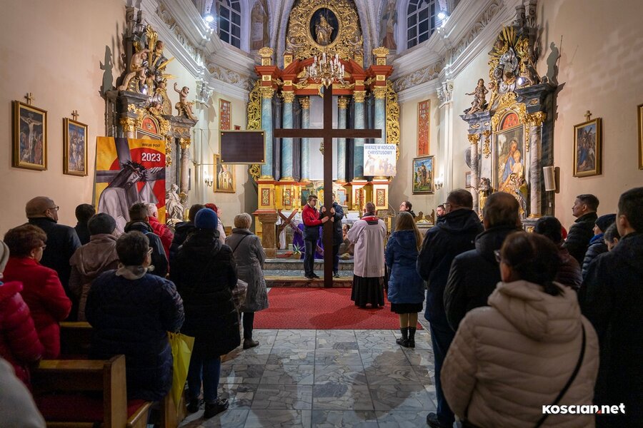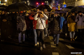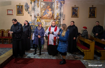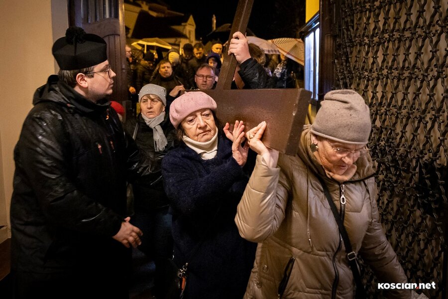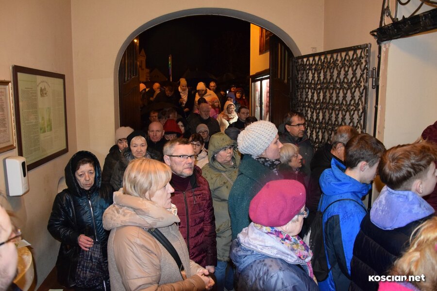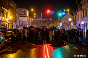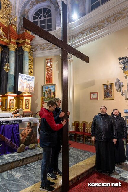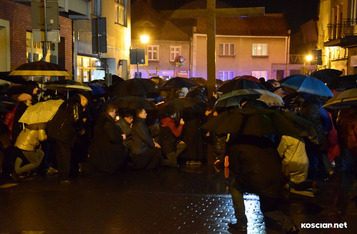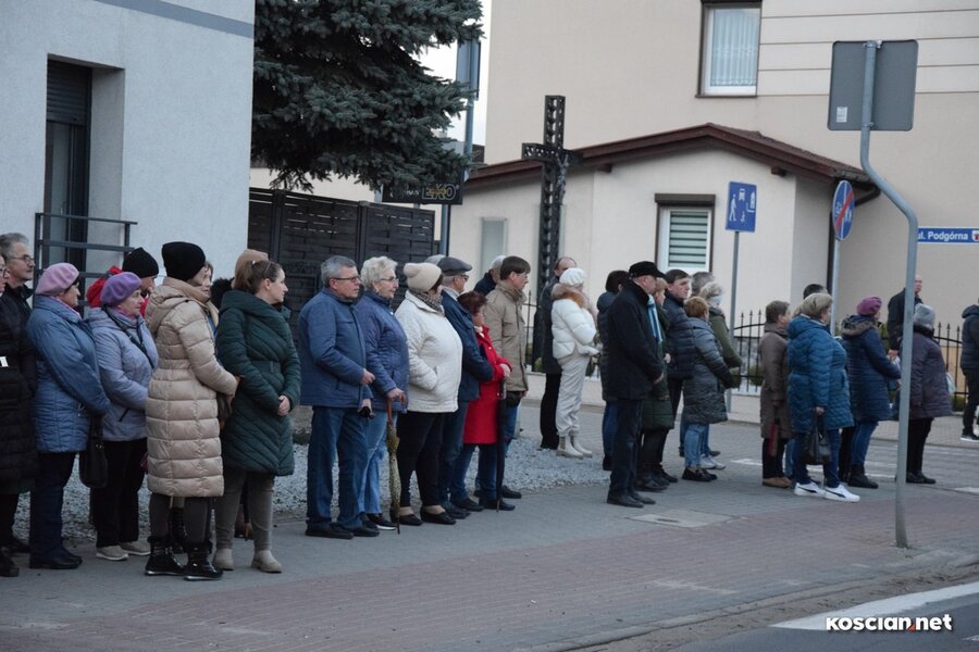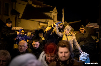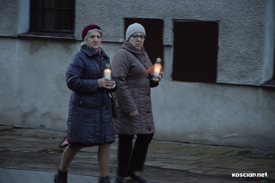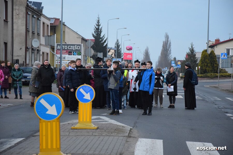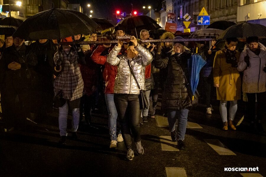 Nabożeństwo Drogi Krzyżowej rozpoczęło się o godz. 19.30 przy Krzyżu na ul. Poznańskiej. W strugach deszczu wierni i kapłani kościańskich parafii przeszli ulicami Poznańską, Piłsudskiego i Rzemieślniczą do kościoła pod wezwaniem Pana Jezusa.