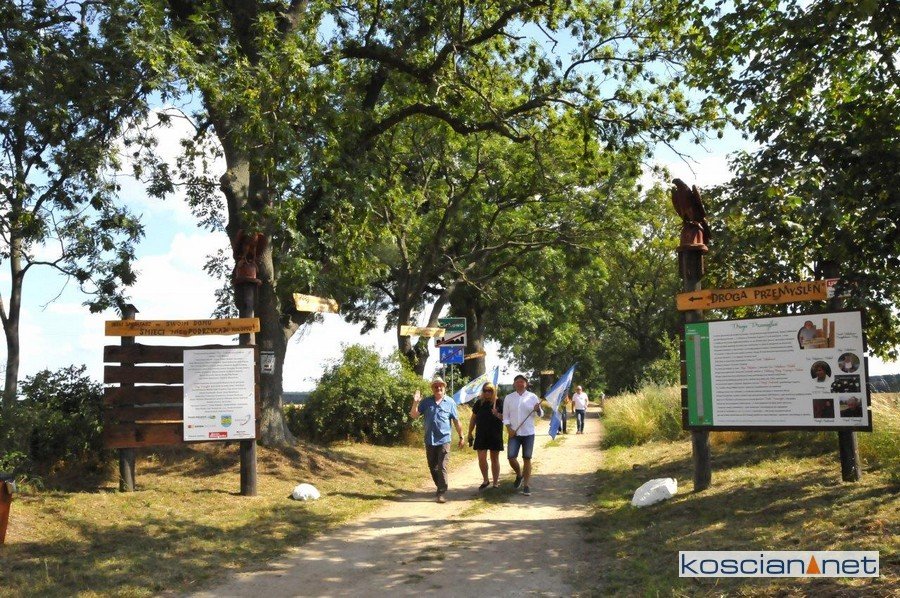Na dwóch słupach umieszczone zostały drewniane rzeźby orłów, które wykonał Henryk Frąckowiak z Łagowa. To nawiązanie do historycznej bramy przy wejściu do parku przy pałacu w Cichowie, którą zdobiły niegdyś dwa białe orły. Na drugiej tablicy wymieniono osoby i podmioty, które przyczyniły się do powstania Drogi Przemyśleń. Parterem projektu jest Gazeta Kościańska.