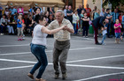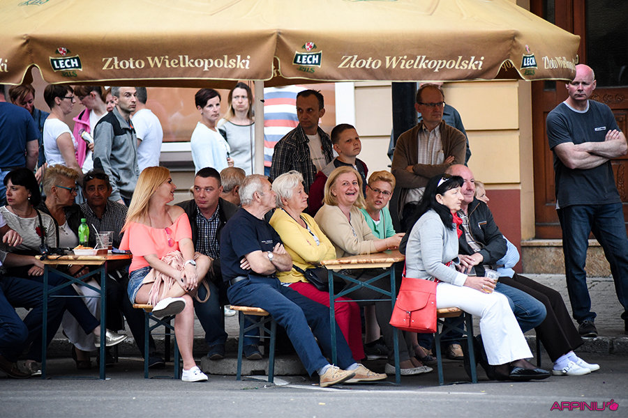 O ile podczas piątkowej biesiady niemal wszyscy jej uczestnicy siedzieli przy stolikach, to w sobotni wieczór z godziny na godzinę przybywało tańczących. Po zmroku „parkiet” był już pełen, a śpiew biesiadników niósł się daleko poza rynek.