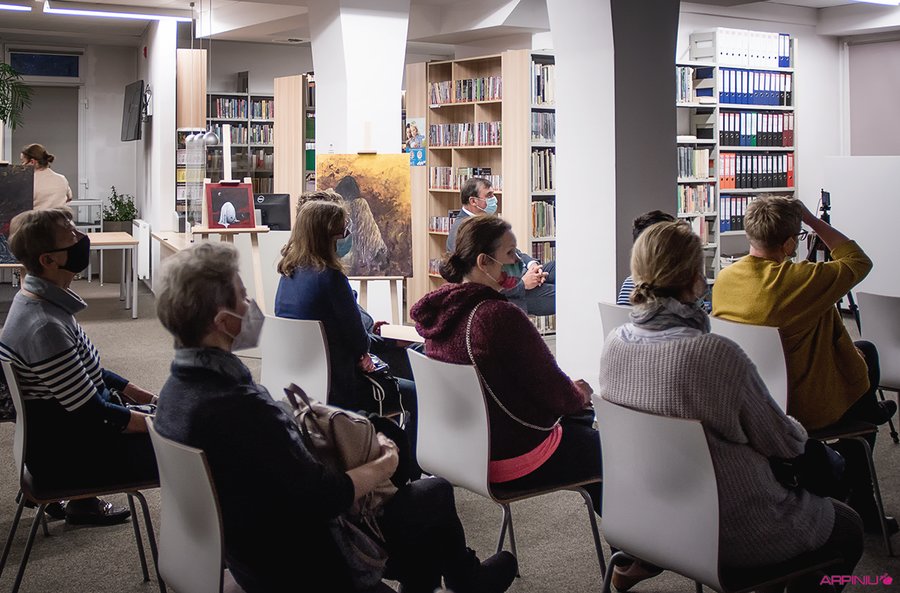 Kilka obrazów można było obejrzeć na towarzyszącej spotkaniu wystawie, a fotografie wyświetlano w tle na telebimie.