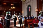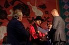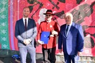 Dudziarską brać na Ziemi Kościańskiej oficjalnie powitali burmistrz Kościana Piotr Ruszkiewicz, przewodniczący Rady Miejskiej Kościana Maciej Zielonka i burmistrz Czempinia Konrad Malicki. Na ręce mistrza Romualda Jędraszaka i młodych muzyków przekazali bochen chleba.