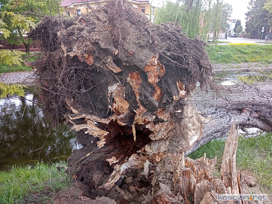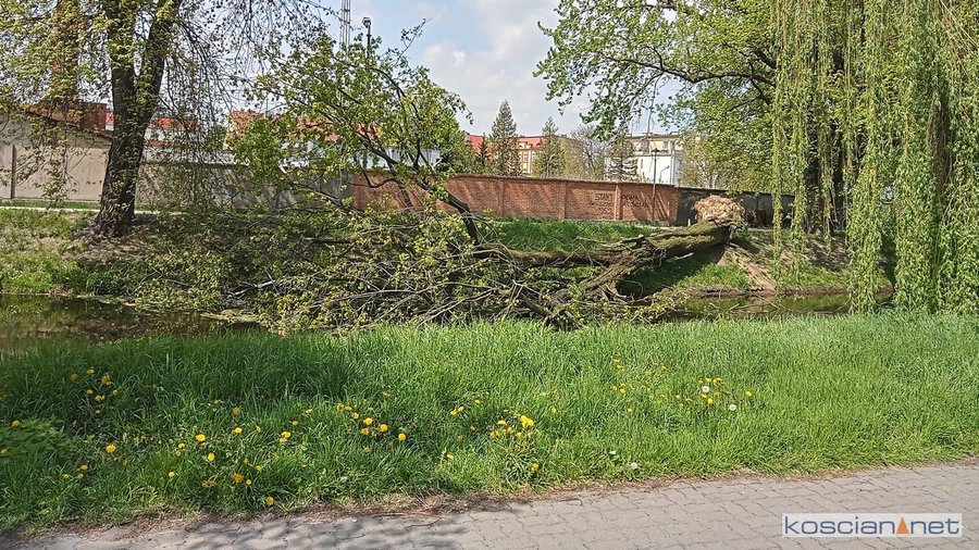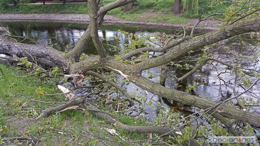 W bezwietrzne przedpołudnie runął do wody ponadstuletni klon srebrzysty rosnący w pobliżu kościańskich mostków.