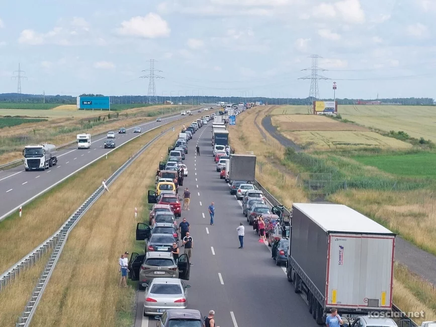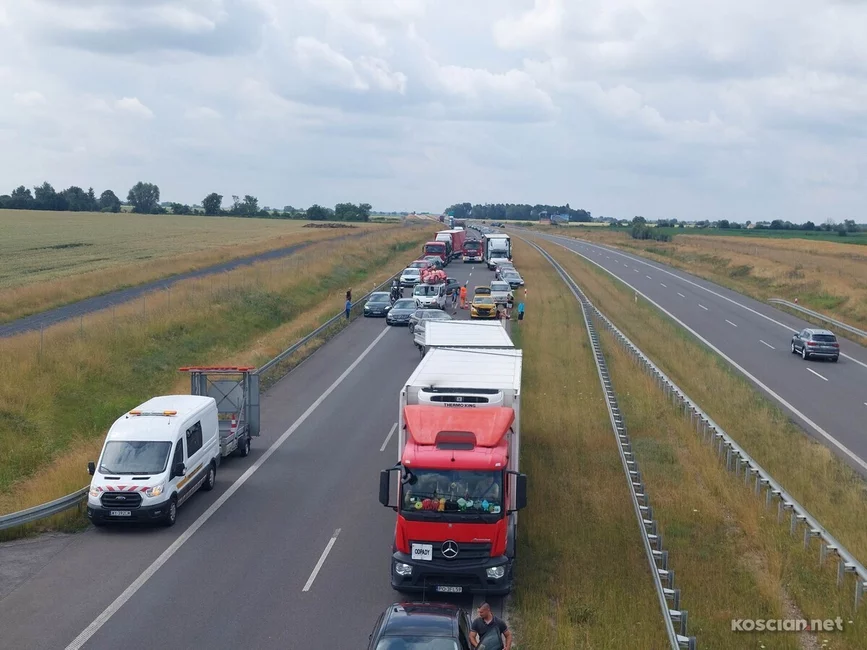 Droga w kierunku Poznania była zablokowana ponad dwie godziny. Na wyznaczonych objazdach tworzyły się duże korki.