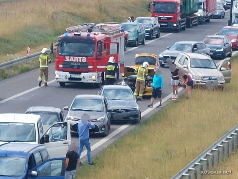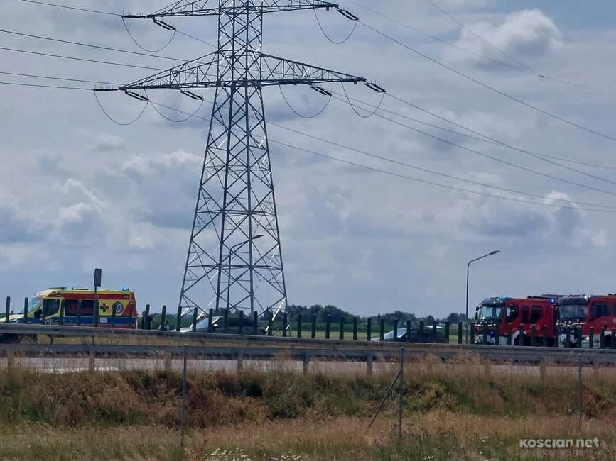 Około godziny 11:00, pomiędzy węzłami Kościan Południe i Kościan Północ, kierujący volkswagenem crafterem wjechał w stojącego renaulta z przyczepką. Kierowców obu aut zabrano do szpitala na badania.