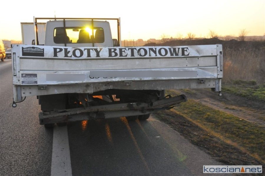 Na odcinku krajowej piątki pomiędzy rondem w Kiełczewie, a wyjazdem z Kościana w kierunku Poznania doszło dziś do dwóch kolizji. Obie spowodowane były niezachowaniem bezpiecznej odległości pomiędzy pojazdami. Przed godziną siedemnastą kierujący renault master najechał na tył iveco daily. Czterdzieści minut później kierowca opla corsa najechał na tył kia ceed. Sprawców ukarano mandatami.