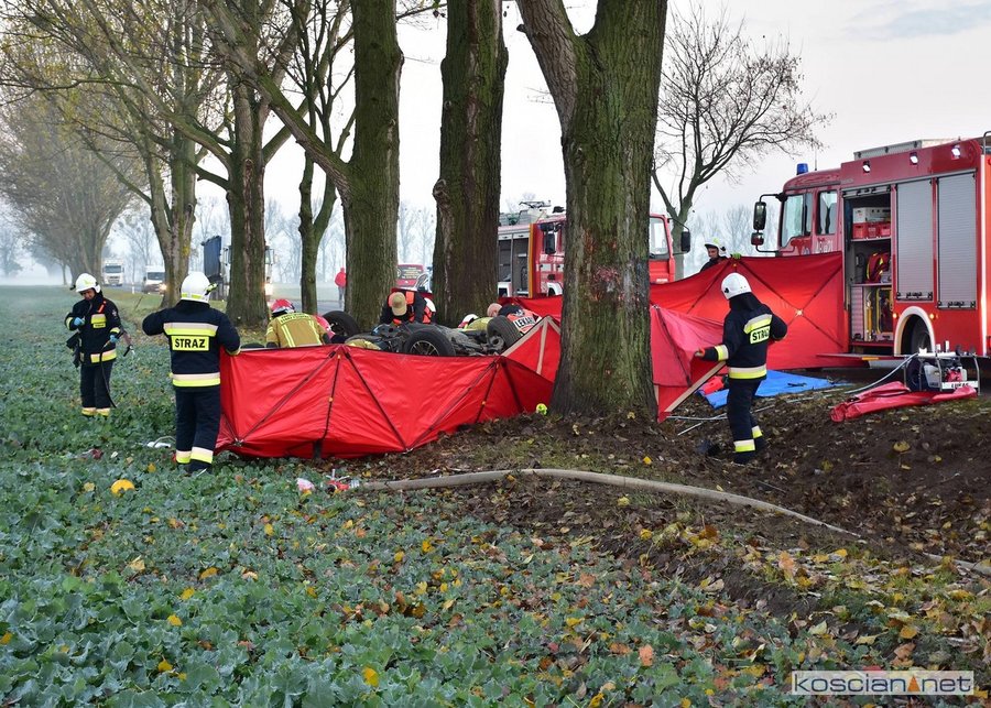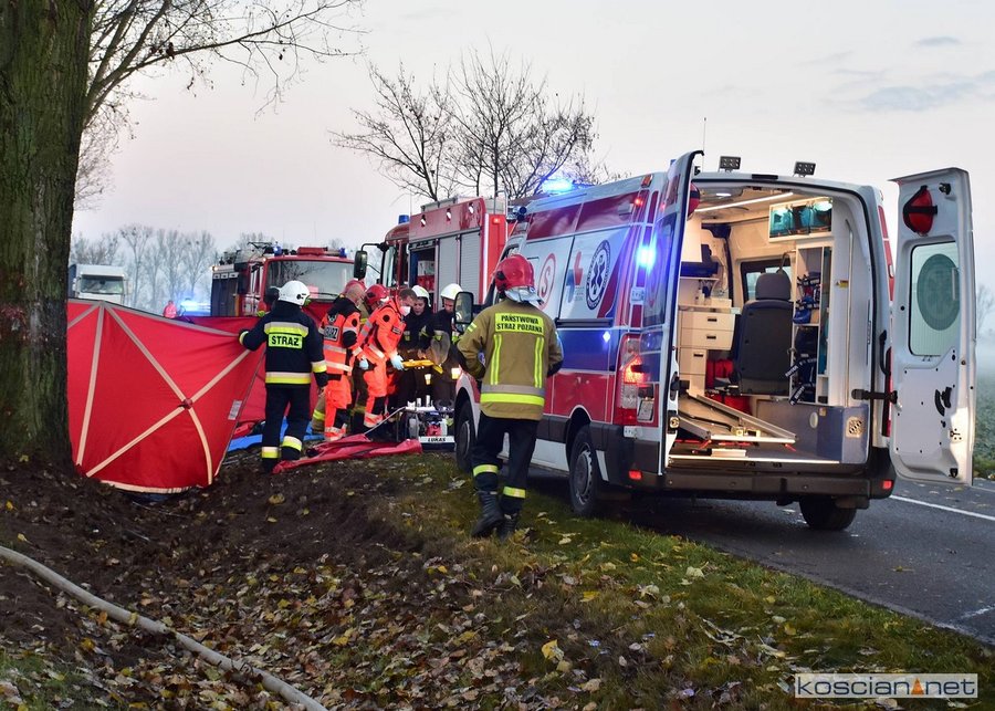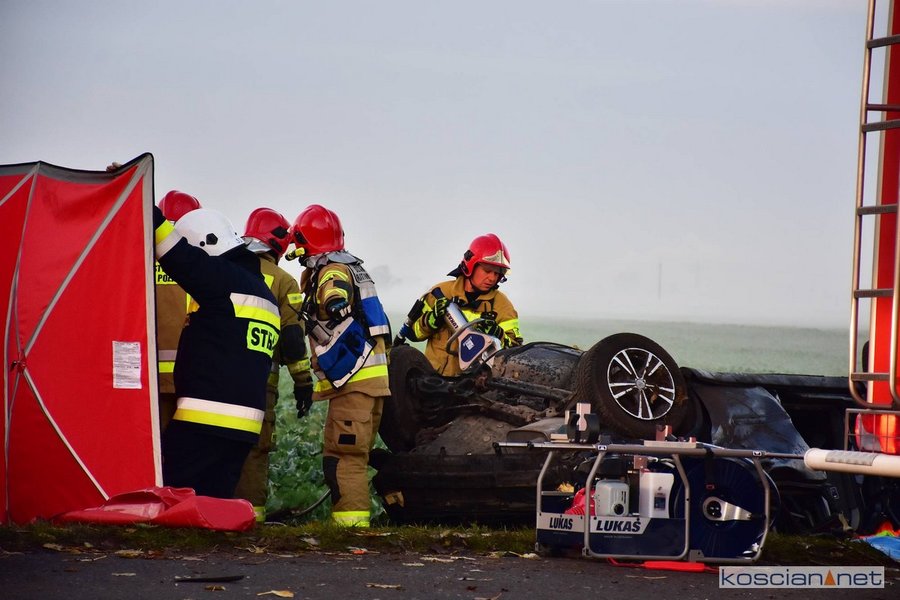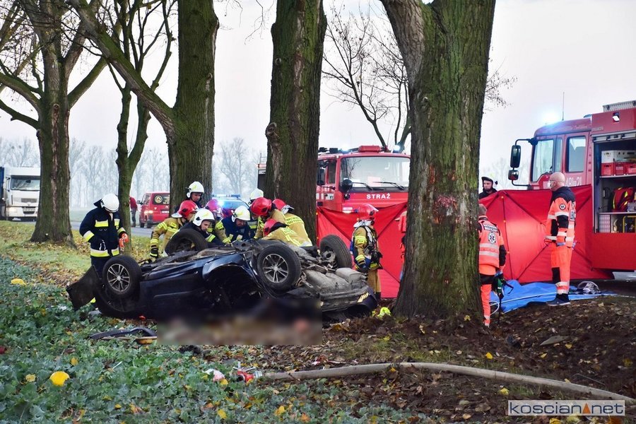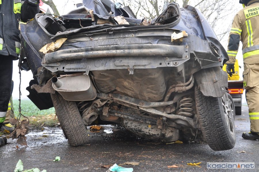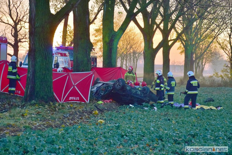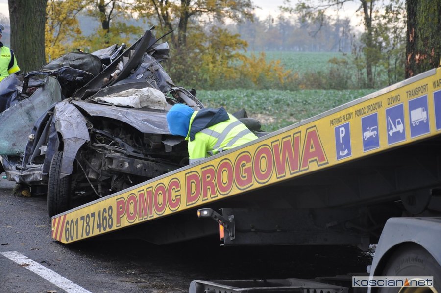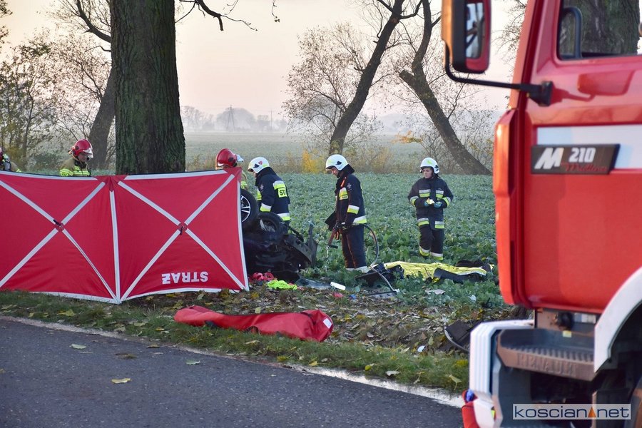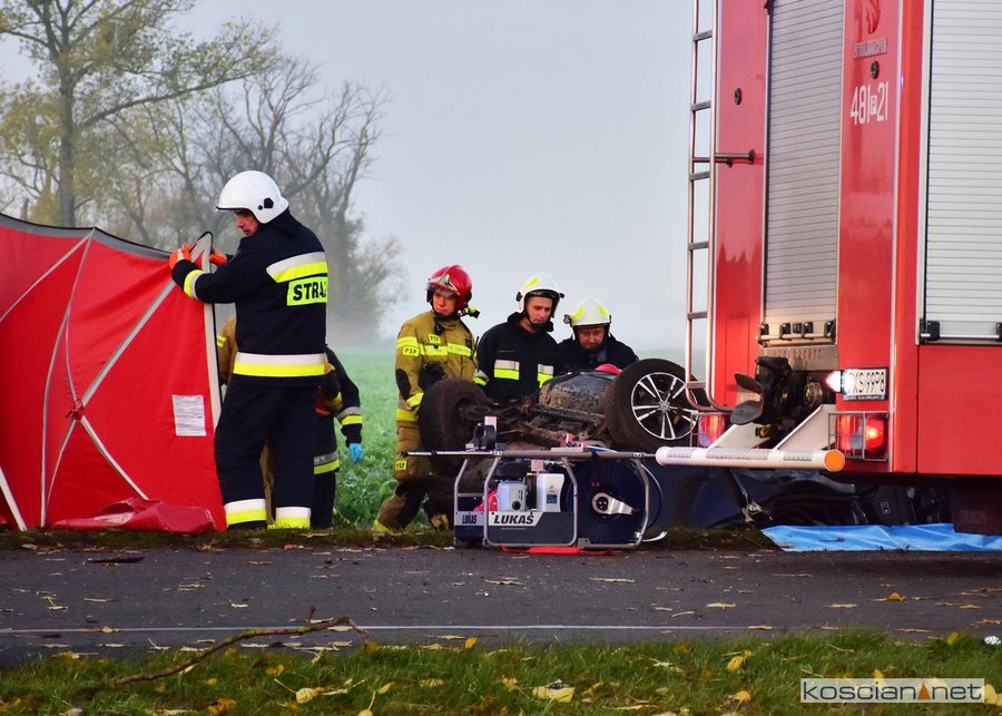 - Strażacy wspólnie z załogą Zespołu Ratownictwa Medycznego przystąpili do udzielania pomocy poszkodowanym. Przy użyciu sprzętu hydraulicznego wykonany został dostęp do uwięzionych we wraku. Po przeprowadzonym badaniu lekarz stwierdził zgon 20-letniego i 38-letniego mężczyzny. Trzeci z poszkodowanych, 30-letni kierowca, został przetransportowany do kościańskiego szpitala – informuje Dawid Kryś, oficer prasowy KP PSP w Kościanie.