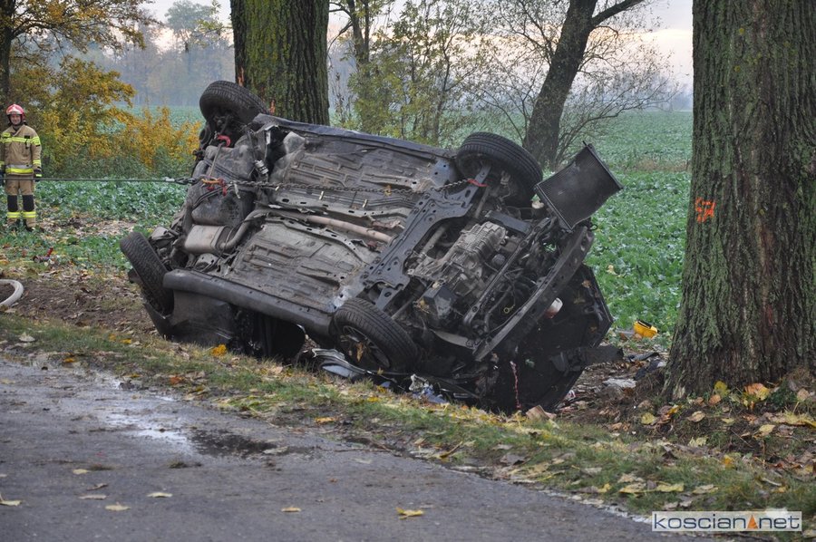 W zdarzeniu uczestniczyły: ford focus i volkswagen caravelle. Podczas manewru wyprzedzania, wykonywanego przez kierowcę forda, doszło do kontaktu z volkswagenem, w wyniku którego samochód osobowy uderzył w przydrożne drzewo i dachował. Na miejsce zadysponowano trzy zastępy z PSP w Kościanie i OSP Głuchowo.