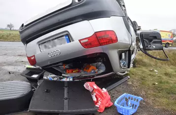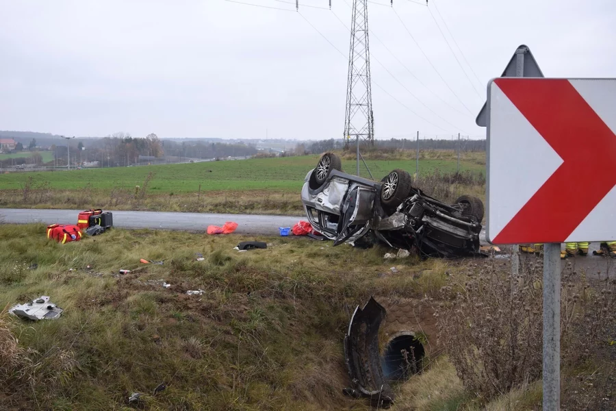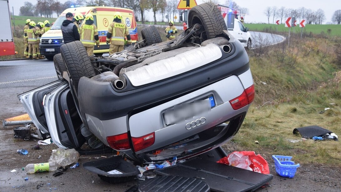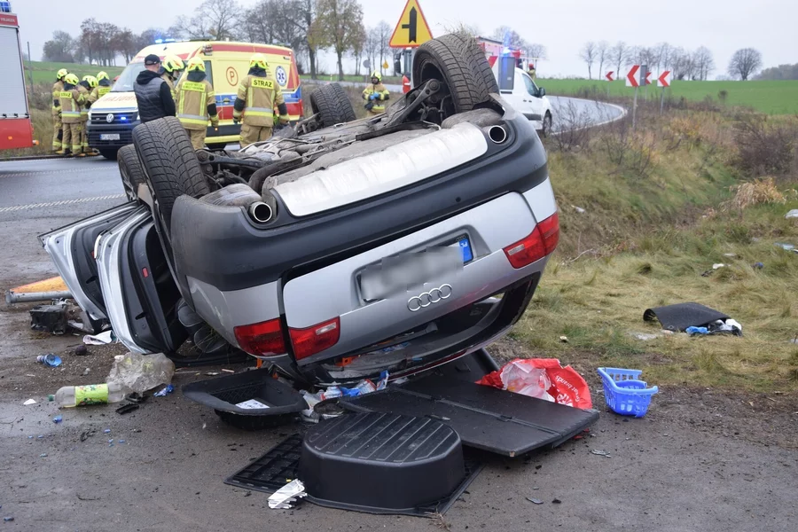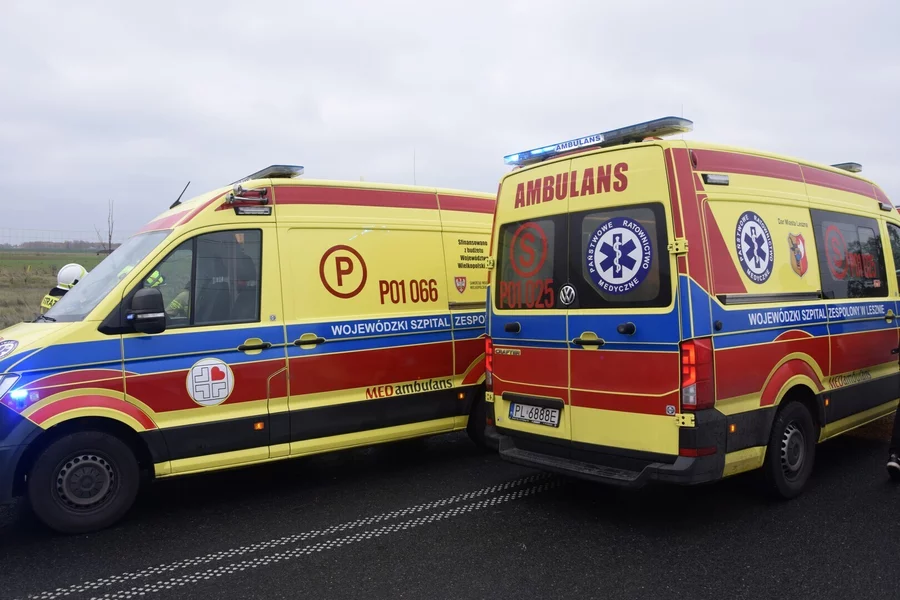 Jak wynika z ustaleń policji, kierujący samochodem marki Audi, 35-letni mieszkaniec Leszna, na łuku drogi wypadł z jezdni i wjechał do rowu, gdzie auto dachowało. Poza kierowcą w samochodzie znajdowała się 35-letnia pasażerka. Oboje zostali ranni i trafili do szpitala.