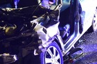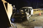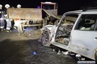 Kierowca renault megan wjechał w tył przyczepy ciągnika rolniczego. Dwie osoby przewieziono do szpitala.