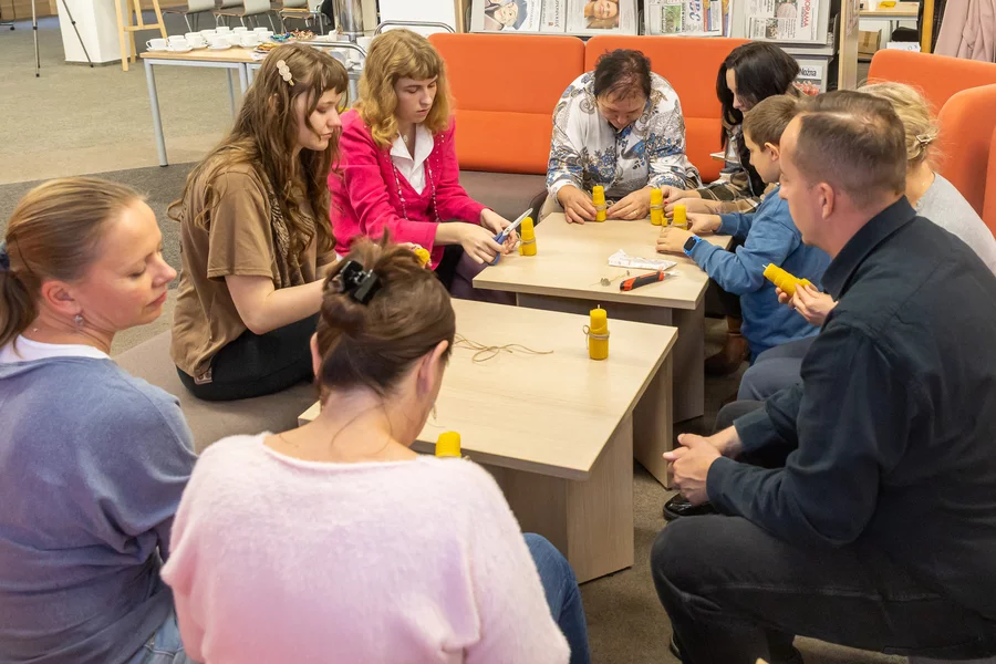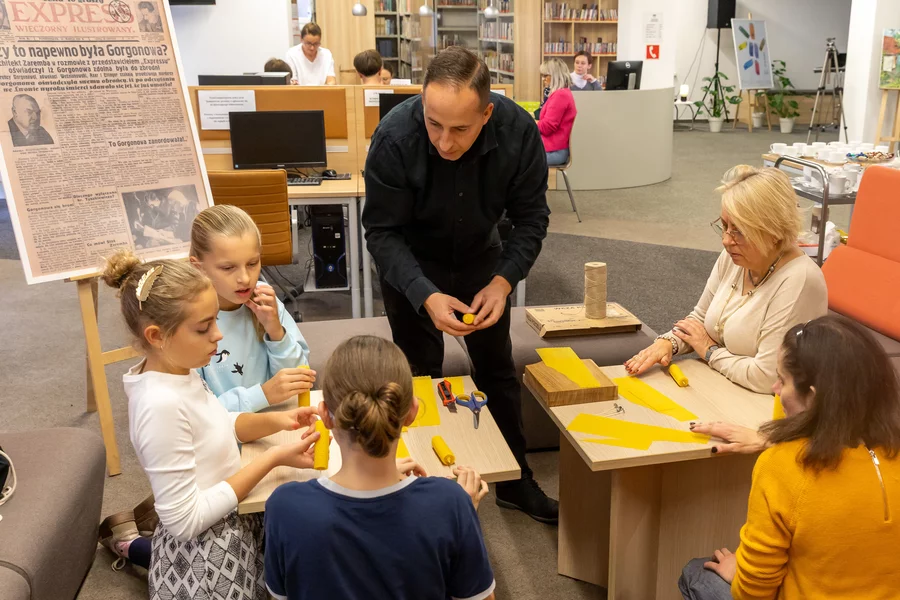 Uczestnicy Nocy Bibliotek mogli również rozwiązywać łamigłówki, układać puzzle z ewangelicką kaplicą, która jest dziś siedzibą biblioteki oraz zabrać do domu atrakcyjne „dzieło natury” – drzewko tui szmaragd. Nie zabrakło słodkiego poczęstunku i przyjaznej atmosfery.