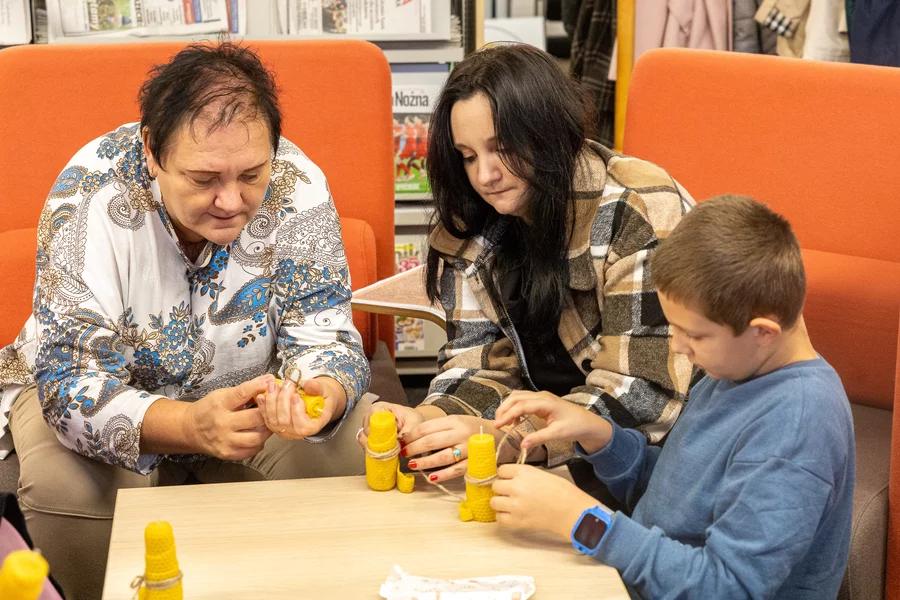 Dorośli natomiast mogli twórczo spędzić czas podczas warsztatów makramy prowadzonych przez bibliotekarki i wyrobu świec z wosku pszczelego, które poprowadził Szymon Ruskowiak z Pasieki Parkowej. Gość opowiadał również o życiu pszczół, dzieląc się swoją pasją i produktami z ula. W ramach Dyskusyjnego Klubu Książki rozmawiano o reportażu Cezarego Łazarewicza „Koronkowa robota”, a kulminacyjnym punktem wieczoru był wykład dr. Emiliana Prałata z cyklu „Z historią przy kawie”, zatytułowany „Noc w kulturze”. Był to inauguracyjny wykład jubileuszowego, dziesiątego sezonu wykładów doktora Prałata w kościańskiej bibliotece.