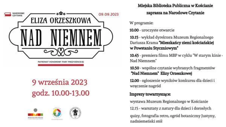 Kościańska biblioteka przygotowała liczne wydarzenia towarzyszące kolejnej edycji akcji „Narodowe czytanie”, w ramach której czytano „Nad Niemnem Elizy Orzeszkowej.