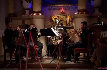 Wieczór pełen wrażeń zakończył koncert sekstetu instrumentów dętych blaszanych "Grupa B(l)acha" w kościele w Racocie.