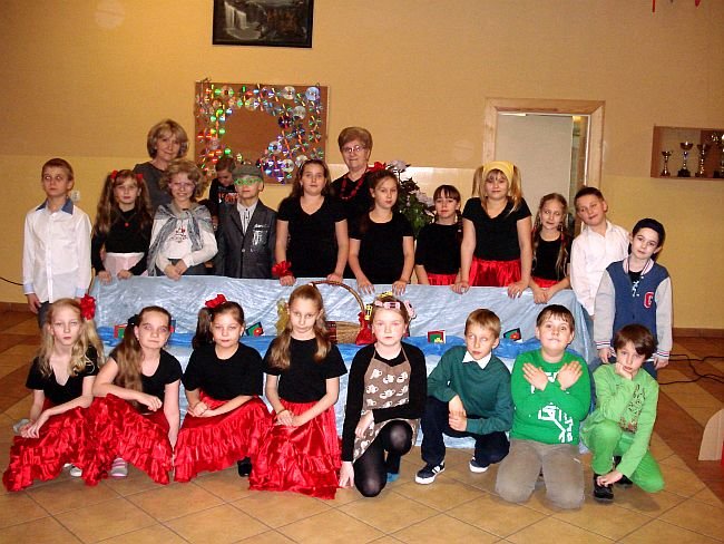 Uczniowie klasy trzeciej ze Szkoły Podstawowej w Starym Luboszu, pod kierunkiem Alicji Kempińskiej, przygotowali program artystyczny (parodię teleturnieju „Familiada”), złożyli seniorom życzenia i wręczyli własnoręcznie wykonane laurki.