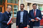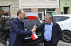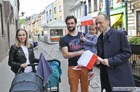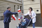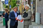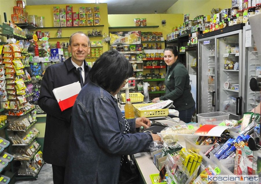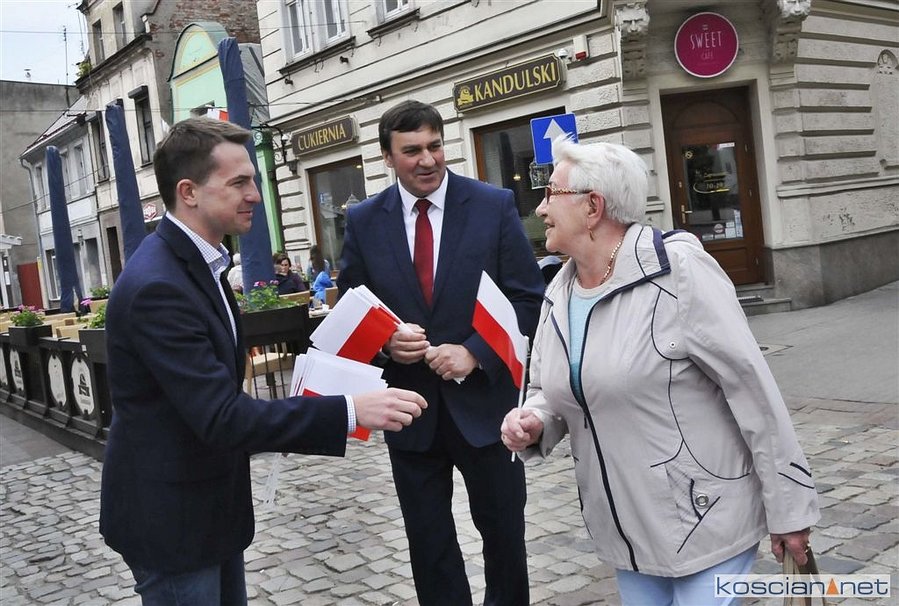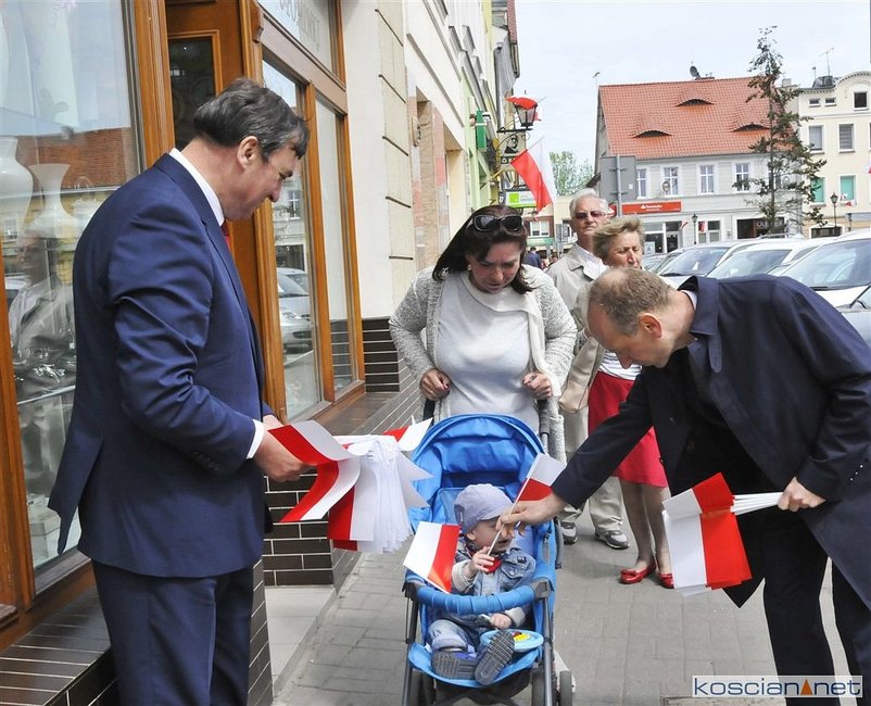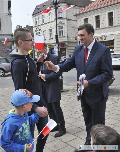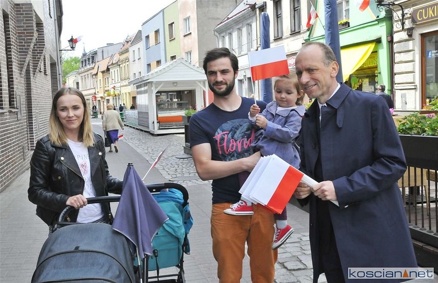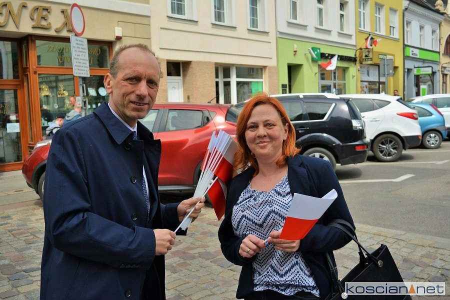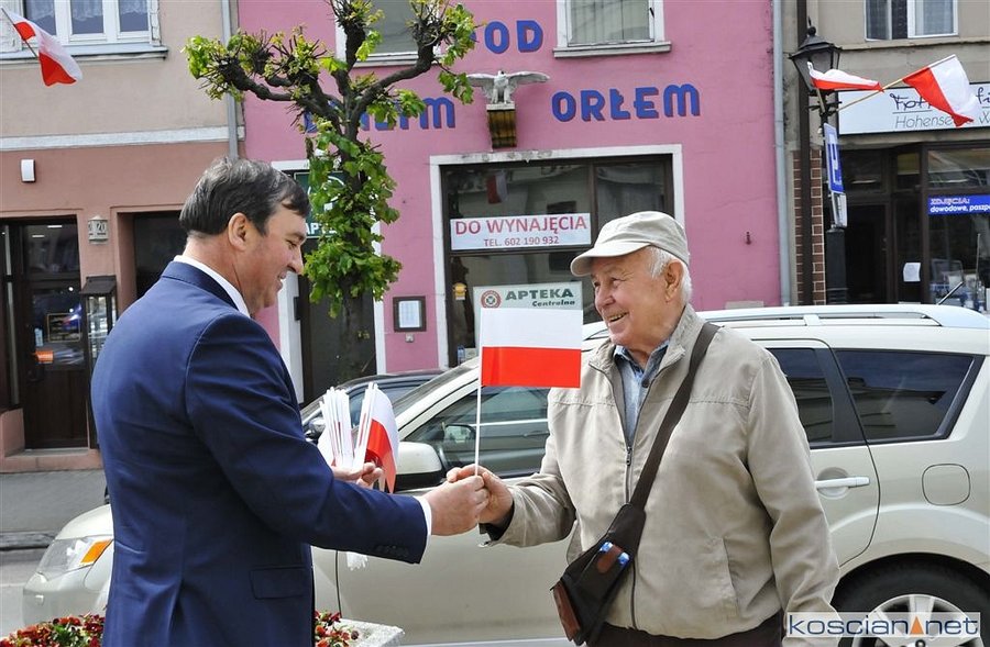 Chorągiewki rozdawali samorządowcy: Przewodniczący Rady Miejskiej Kościana Piotr Ruszkiewicz, wiceprzewodniczący rady Maciej Zielonka, burmistrz Michał Jurga, wiceburmistrz Maciej Kasprzak oraz posłowie: Adam Szłapka i Wojciech Ziemniak.