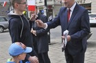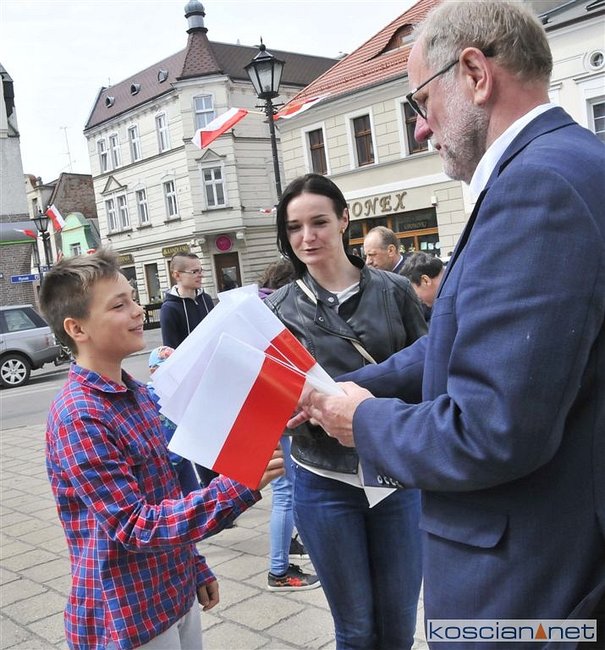Tradycyjnie na kościańskim Rynku rozdawano przechodniom chorągiewki w barwach narodowych. Dzień flagi uczcili także strażacy.
