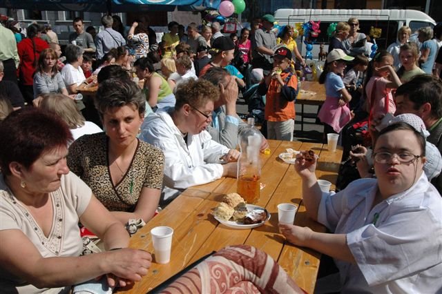 Przez całe przedpołudnie częstowano słodkimi wypiekami, grochówką, bigosem, napojami, popcornem i watą cukrową. Na stoiskach rozstawionych na deptaku można było kupić drobiazgi wykonane przez niepełnosprawnych, a także zbadać poziom cukru we krwi, ciśnienie. Czynny był też punkt porad Powiatowego Centrum Pomocy Rodzinie. Można było też skorzystać z dmuchanej zjeżdżalni i zabaw w suchym basenie. (kar)