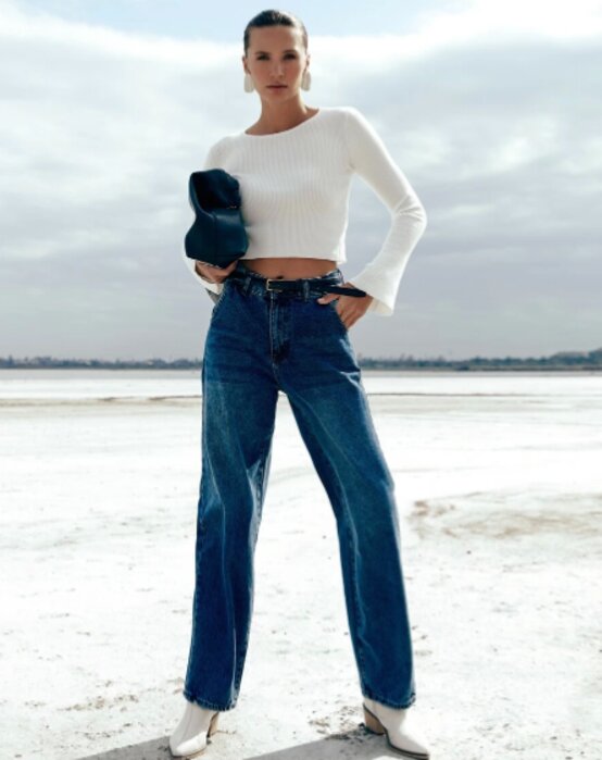 Retro rządzi! Dzwony, mom jeans, spodnie z wysokim stanem – jeansy w stylu vintage są znowu na topie! Połącz je z dzianinową bluzką, oversize'owym swetrem lub skórzaną kurtką rodem z lat 90. Dodaj okulary w stylu kocich oczu i małą torebkę, a będziesz wyglądać jak gwiazda starego kina. A może połączysz jeansy z koszulą w kwiaty i zamszową kamizelką? Albo z bluzką z falbanami i dużymi kolczykami? Stylizacji w stylu retro jest nieskończenie wiele! Nie zapomnij o fryzurze – loki z lat 70. albo wysoki kucyk, idealnie uzupełnią Twój look.
