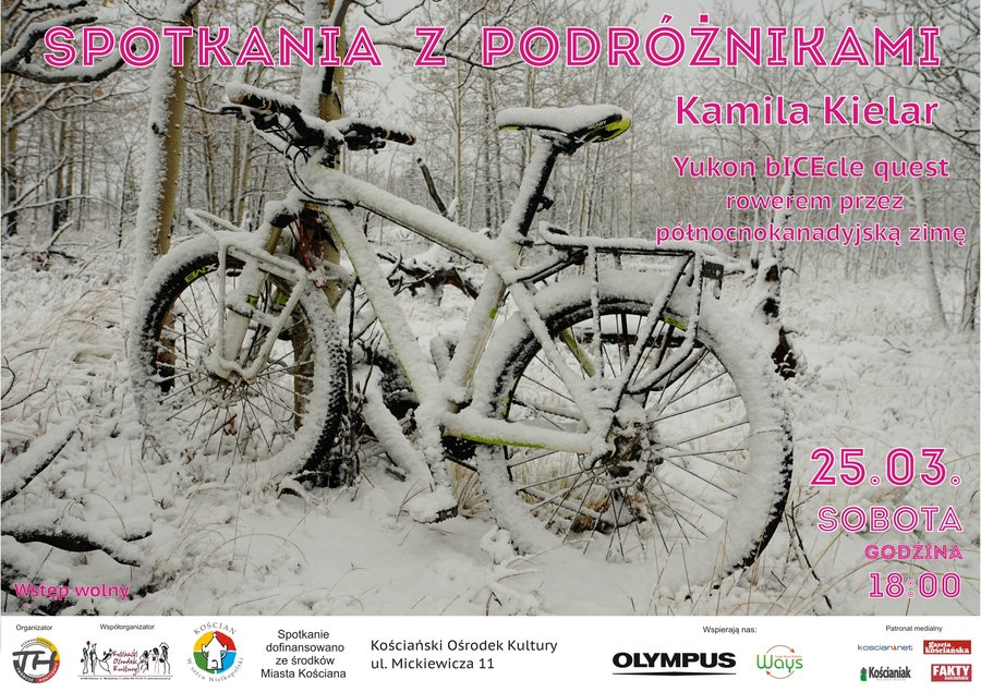 Kościański Ośrodek Kultury i Stowarzyszenie Twórcze Horyzonty zapraszają na spotkanie z Kamilą Kielar, która opowie o samotnej i ekstremalnej podróży rowerem. Pokonała około 2000 km, w tym 400 km po nieutwardzanej drodze Dempster Highway, jedynej w Kanadzie, która prowadzi w arktyczne regiony regiony kraju i nie jest zamykana na zimę.