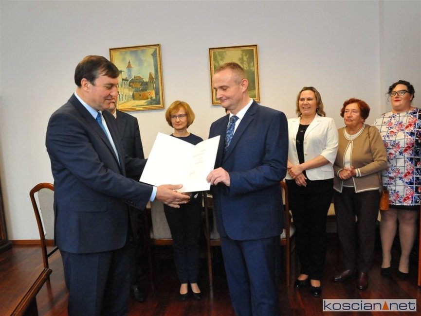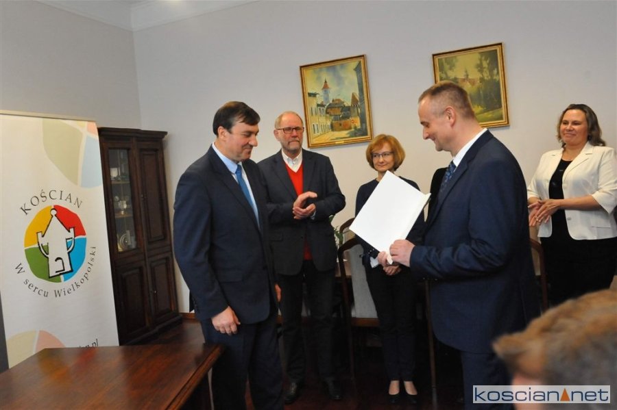 Uroczyste wręczenie zaświadczenia odbyło się w gabinecie burmistrza. Dokument wręczył elektowi Przewodniczący Miejskiej Komisji Wyborczej w Kościanie Arkadiusz Gałka.