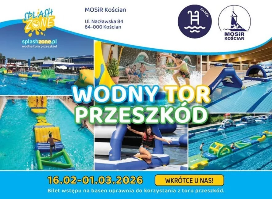 basen - wodny tor przeszkód promocyjny bilet dla dzieci i młodzieży z Kościańską Kartą Mieszkańca,