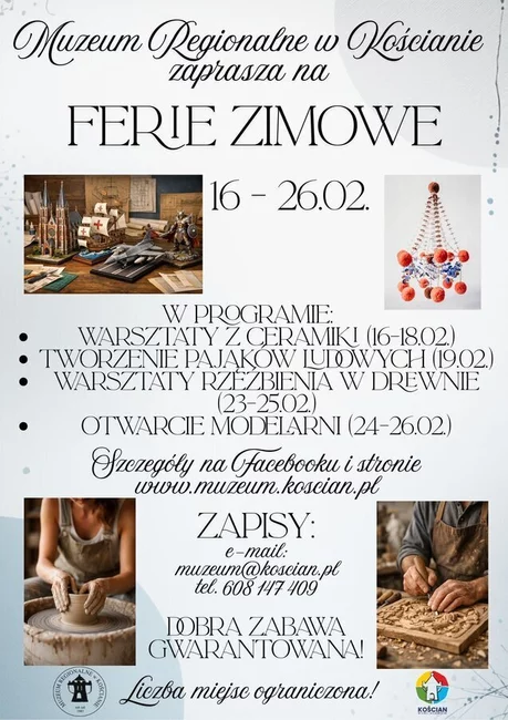 Warsztaty ceramiczne, samodzielne oprawianie książki, rzeźbienie w drewnie, tematyczne maratony filmowe, zajęcia inspirowane światem gier, turnieje sportowe i promocyjne wejścia na miejskie obiekty – tak zapowiadają się ferie w Kościanie. Sprawdzamy, co przygotowały miejskie instytucje.