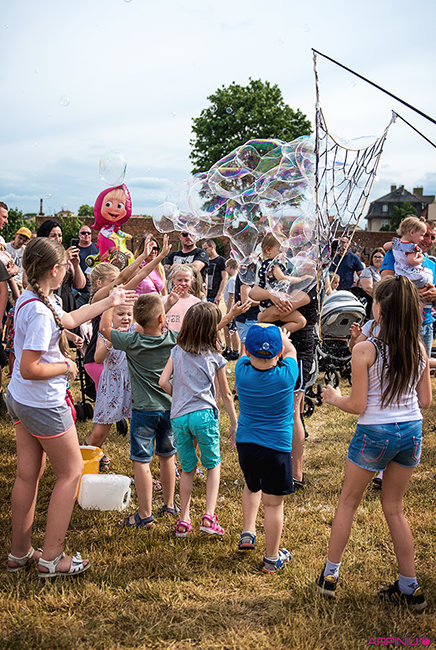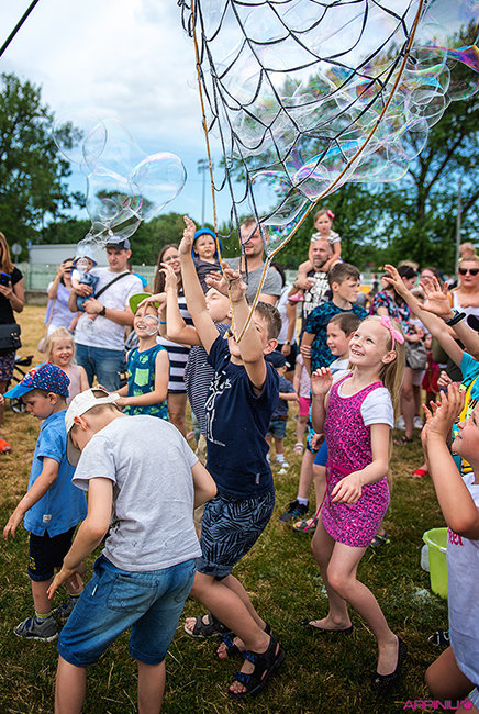 Dużym zainteresowaniem cieszył się festiwal baniek mydlanych i kolorów.