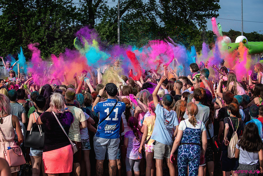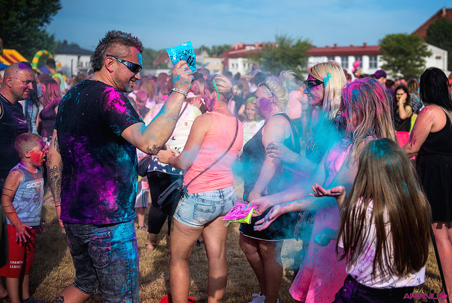 Impreza, podczas której dzieci bawiły się bańkami mydlanymi i obrzucały się kolorowymi proszkami holi, odbyła się w niedzielę, 16 czerwca, na boisku przy ul. Maya w Kościanie.