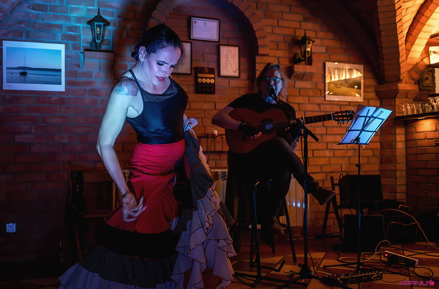 W kawiarni Saskia w Kościanie wystąpił Witek Łukaszewski w towarzystwie tancerki flamenco Angeli Bobkowskiej.
