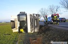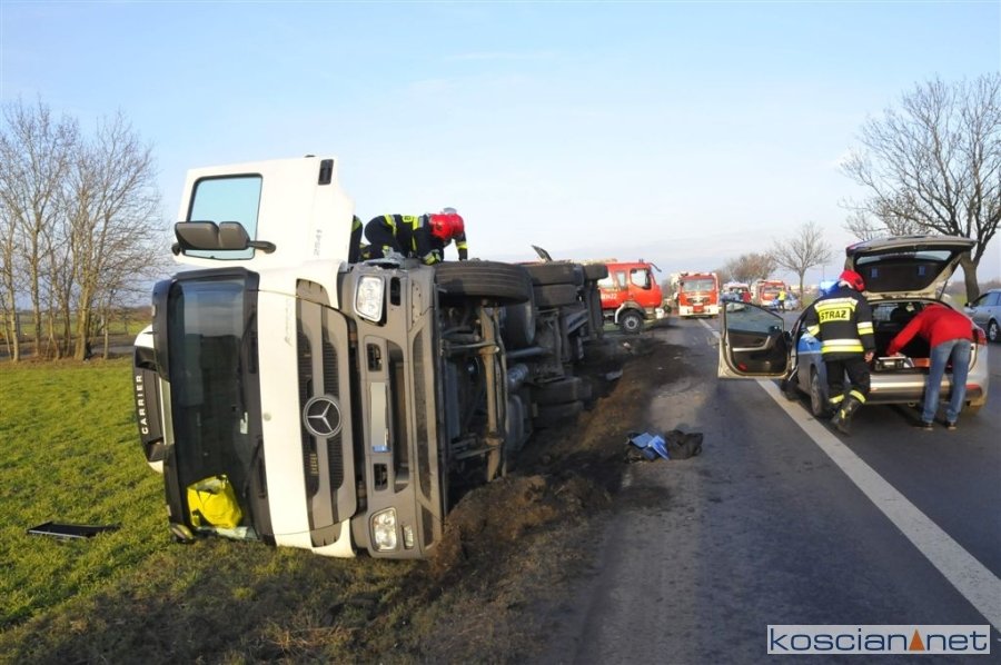 - Jak wynika ze wstępnych ustaleń, kierująca fordem, 40-letnia mieszkanka powiatu kościańskiego, zjechała na przeciwny pas ruchu, którym jechał ciężarowy mercedes z naczepą – informuje Radosław Nowak, oficer prasowy KPP w Kościanie. - 46-letni kierowca mercedesa chcąc uniknąć czołowego zderzenia zjechał na prawo. Po tym manewrze ciężarówka przewróciła się.