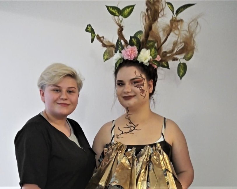 - Konkurs był ciekawym doświadczeniem dla uczniów klas fryzjerskich. Mogli oni zaprezentować interesujące aranżacje fryzur wykonanych przy pomocy ekologicznych materiałów. Przygotowania do konkursu były okazją do częstych spotkań online i dobrej zabawy. Uczniowie mieli mnóstwo ciekawych pomysłów – informuje Irmina Jaźwińska, pod okiem której uczniowie rozwijali i realizowali swe projekty. - Zmagania uczestników odbywały się online. Dziewczyny czesały fryzury na modelkach. Swoje prace musiały udokumentować na 90-minutowym filmie. Samo podjęcie wyzwania, kreatywność, motywacja i zaangażowanie uczestniczek zasługuje na podziw.