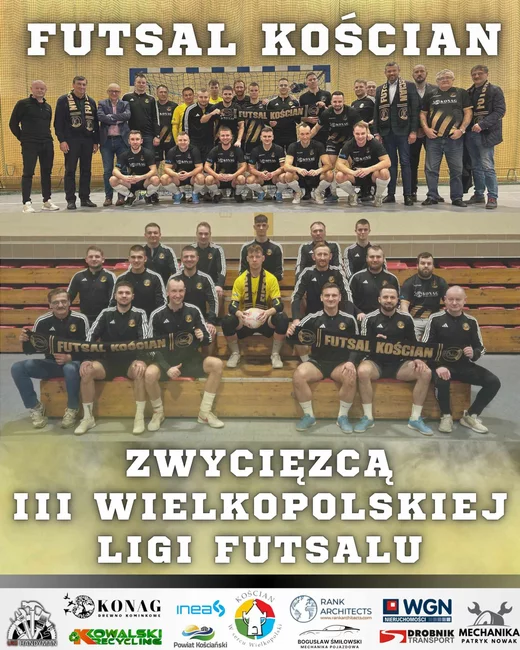 Zespół Futsal Kościan z dorobkiem 19 punktów wyprzedził w tabeli o jedno oczko Marbud Team Jutrosin i został Mistrzem 3 Wielkopolskiej Ligi Futsalu.