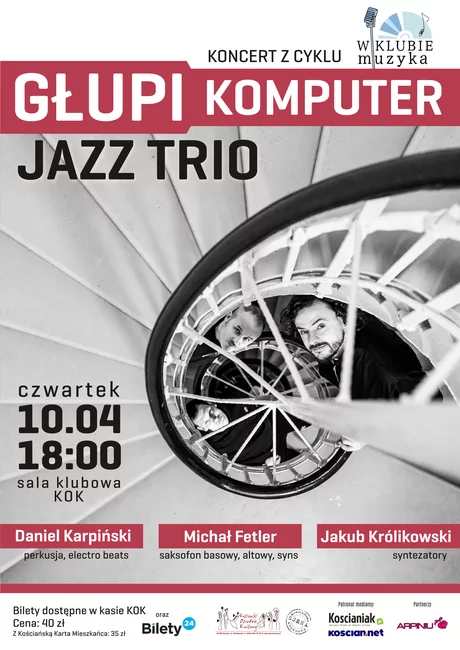 Kościański Ośrodek Kultury zaprasza na koncert „Głupiego Komputera”, charyzmatycznego trio, które na nowo odkrywa walory muzyki elektronicznej i szeroko pojętej muzyki jazzowej.
